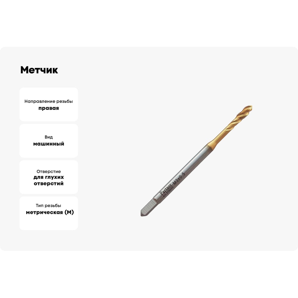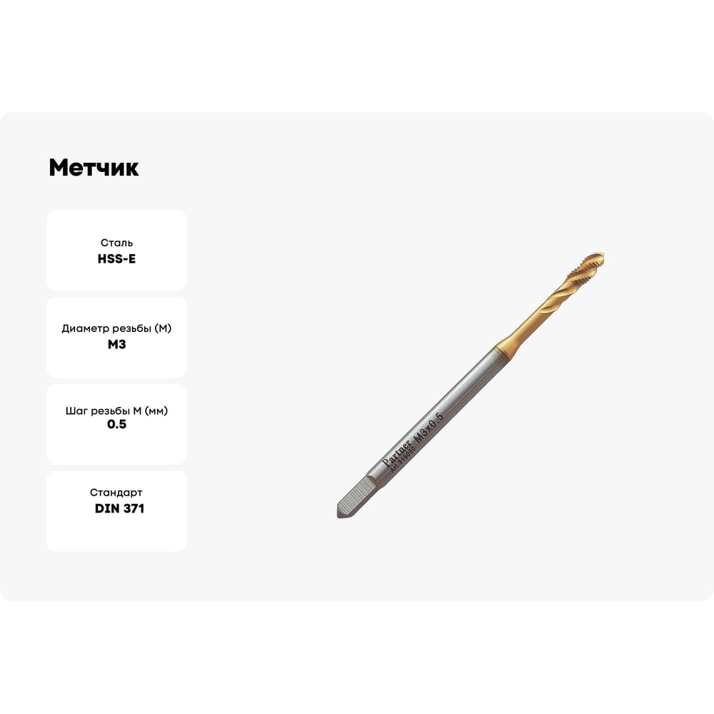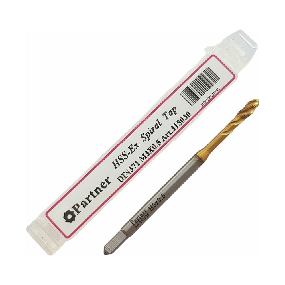 Метчик Partner M3х0,5 HSSE, DIN371, спиральная канавка, Н6, TiN 315030