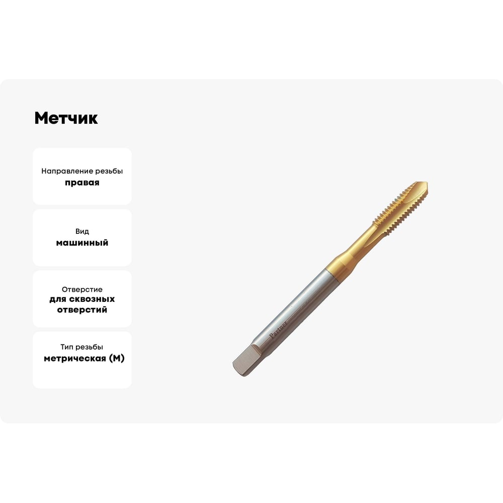 Метчик Partner M6х1.0 HSSE, DIN371, прямая канавка со спиральной подточкой, Н6, TiN серия 316 316060