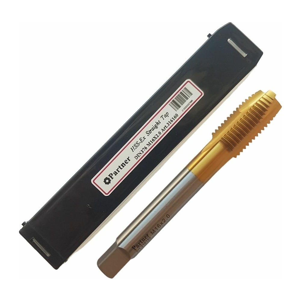 Метчик Partner M16х2.0 HSSE, DIN376, прямая канавка со спиральной подточкой, Н6, TiN 316160