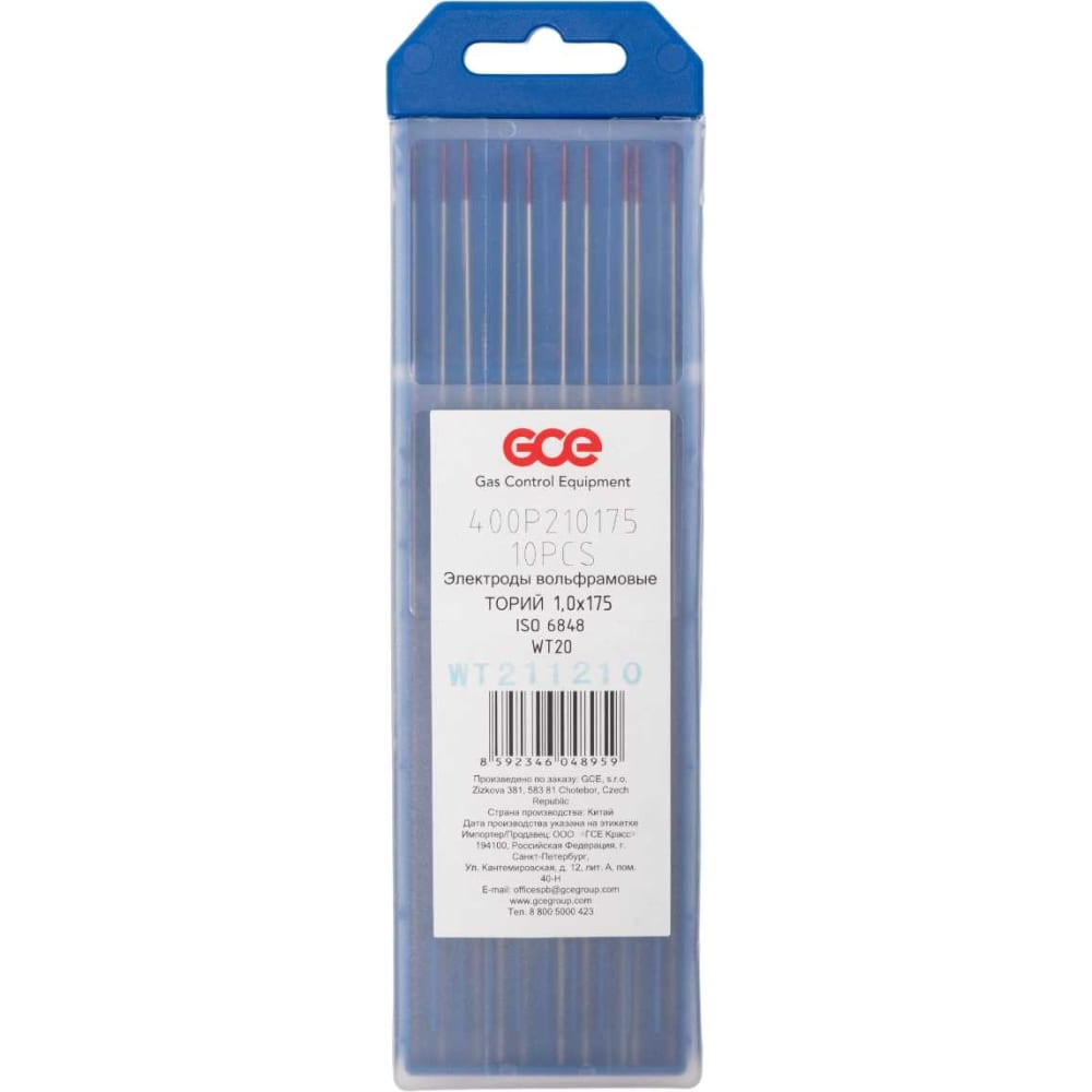 GCE Электрод вольфрамовый WT-20; 10 шт. красный; 1,0x175 мм 400P210175SB