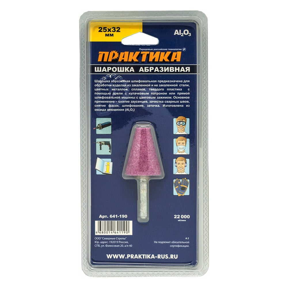 Шарошка абразивная (25х32 мм; хвостовик 6 мм) ПРАКТИКА 641-190