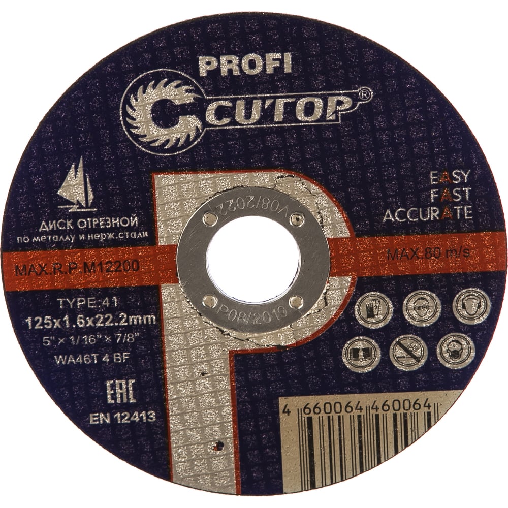 Диск отрезной по металлу T41 (125х22.2 мм) для УШМ CUTOP 12516