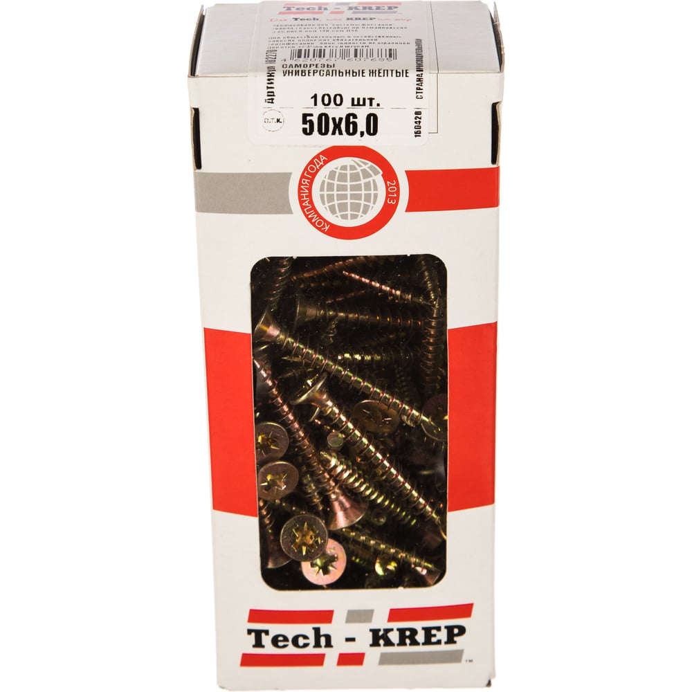 Универсальный саморез Tech-Krep 50х6,0 мм 100 шт желтый, коробка с окном 102270