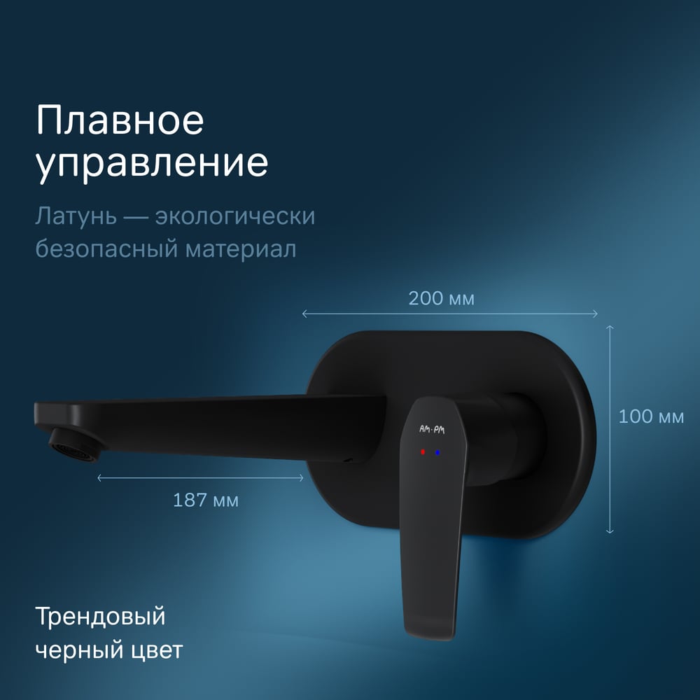 Смеситель для умывальника AM.PM Gem монтируемый в стену, чёрный F90A72222