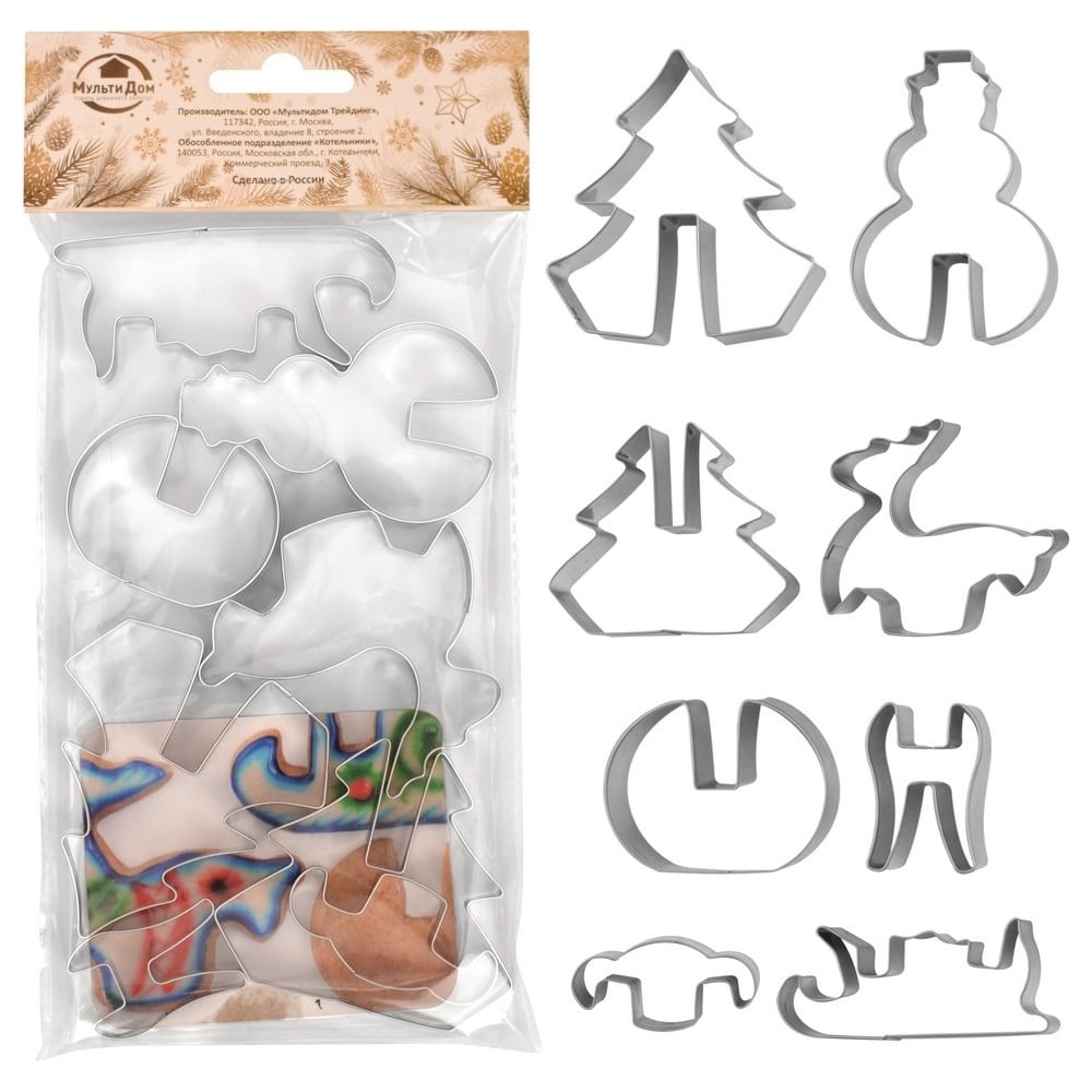 Набор кулинарных форм МУЛЬТИДОМ Новогодний сюрприз 8 шт, размеры от 3 см до 8 см, высота 2.5 см VL2-74