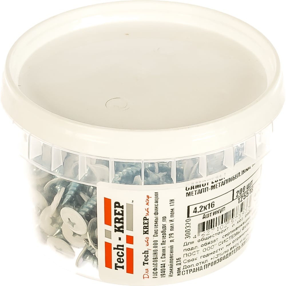 Саморез Tech-Krep ШСММ 4,2х16 белый KP RAL 9003 200 шт, ведро малое 125518