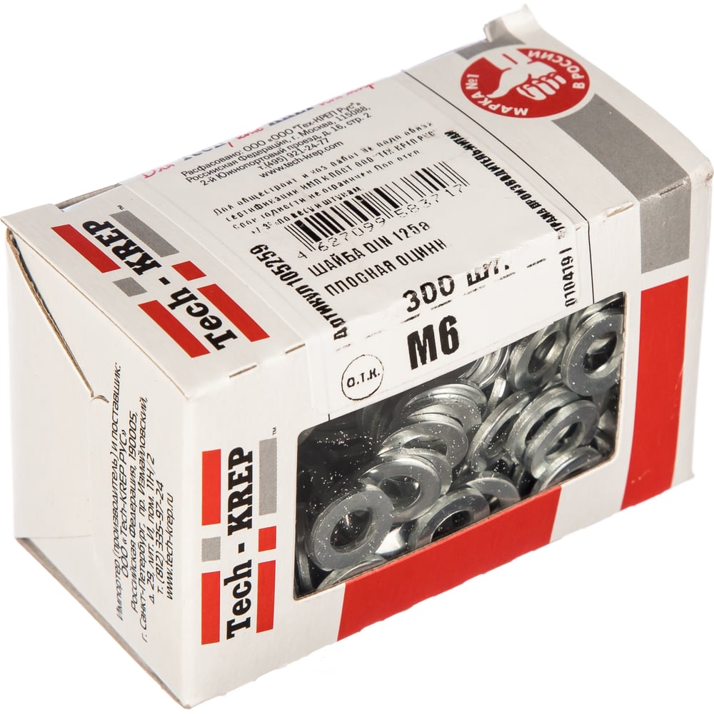 Плоская оцинкованная шайба DIN125а М6 300шт - коробка Tech-Krep 105259