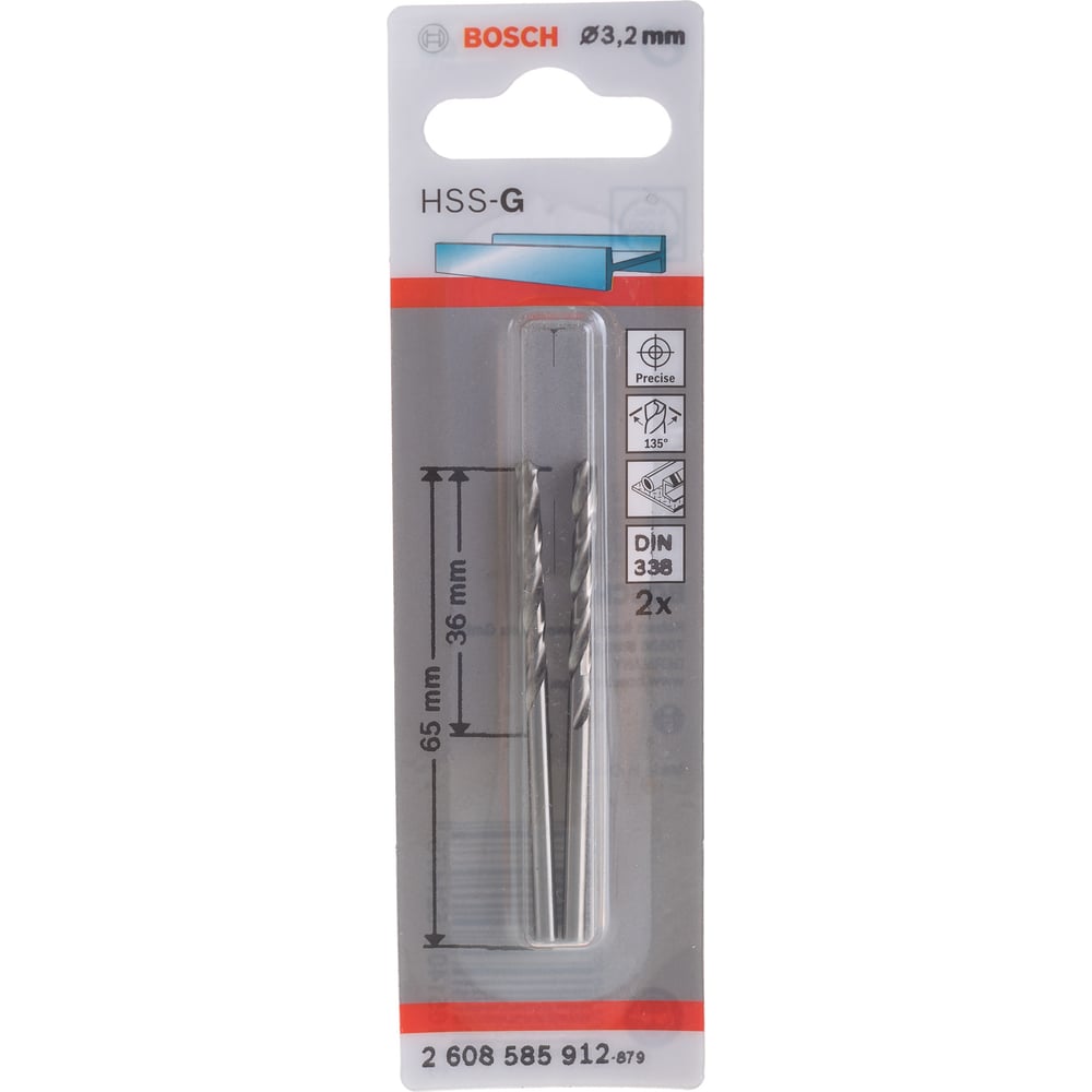 Сверло Standard по металлу 2 шт. (3,2х36/65 мм; HSS-G) Bosch 2608585912