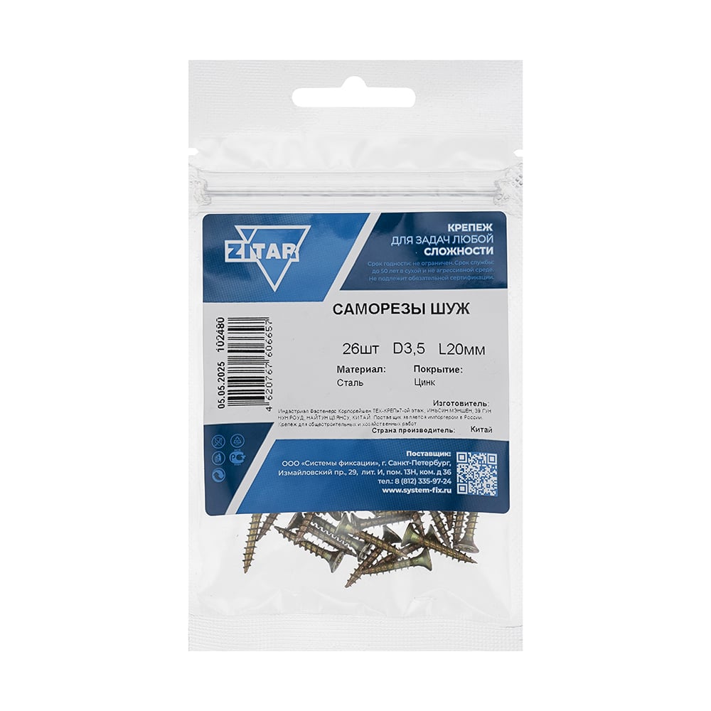 Саморез ШУж 3,5х20 потайная головка 26 шт, пакет Zitar 102480
