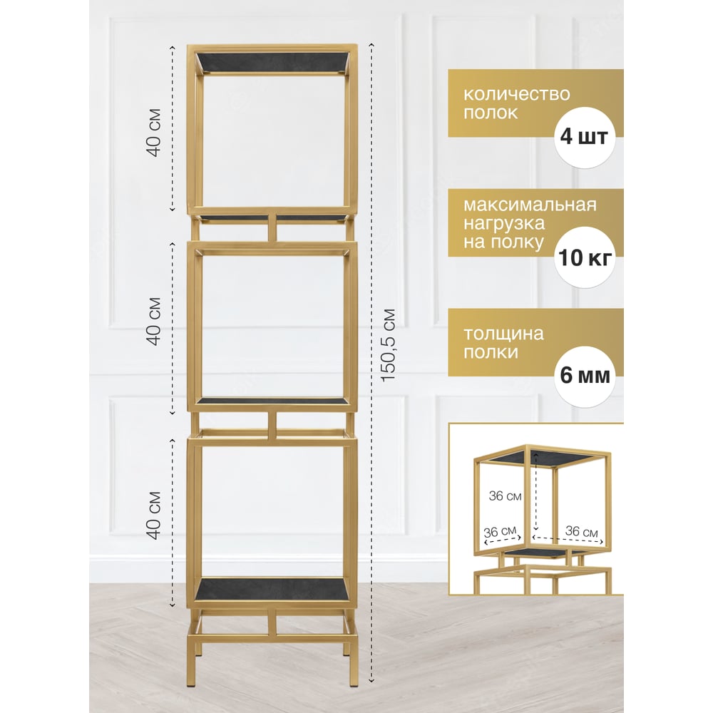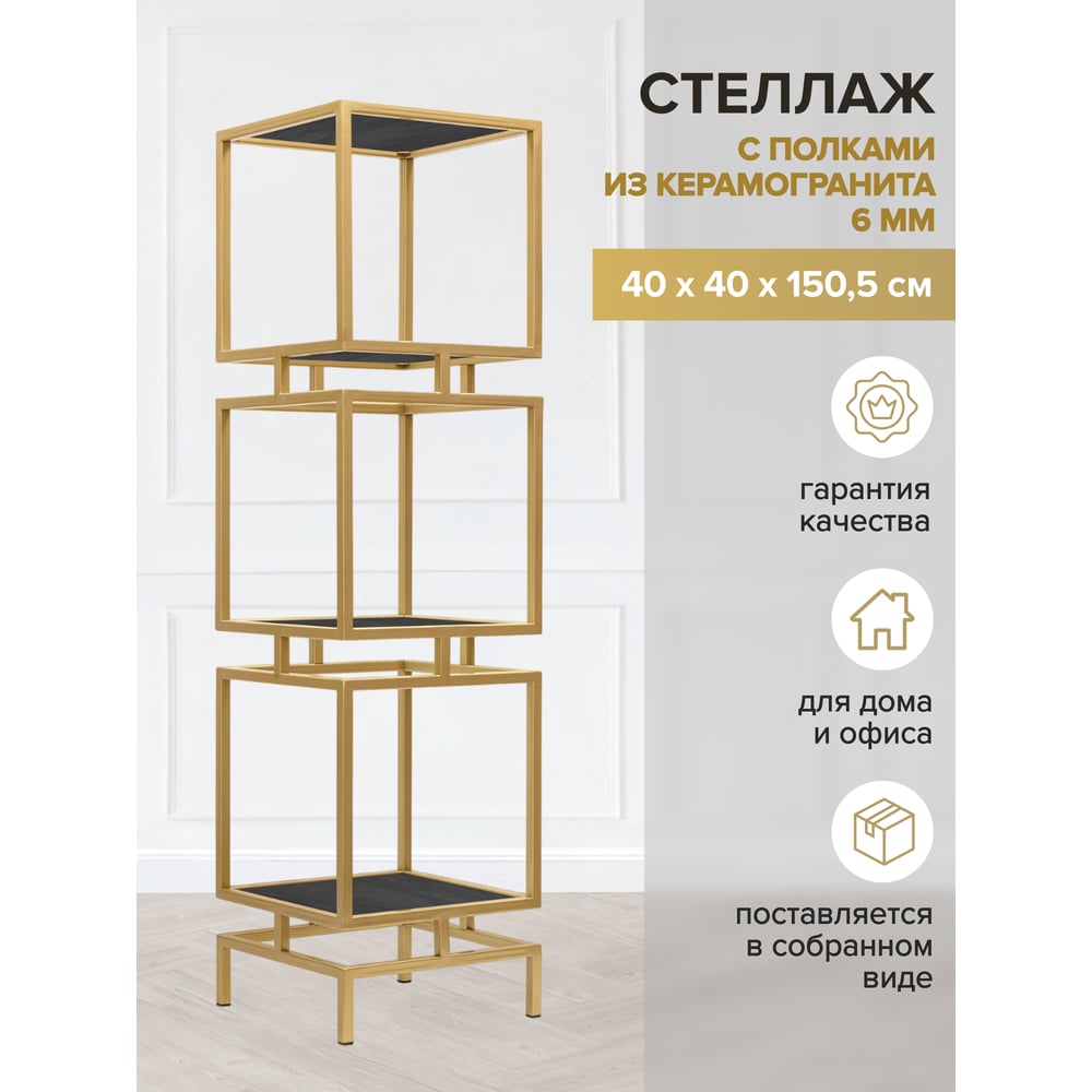 Стеллаж GreenWeen CUBIC-3, золотой каркас, полки керамика Antracite, 1505x400x400 GW-CUBIC-3-G-KA