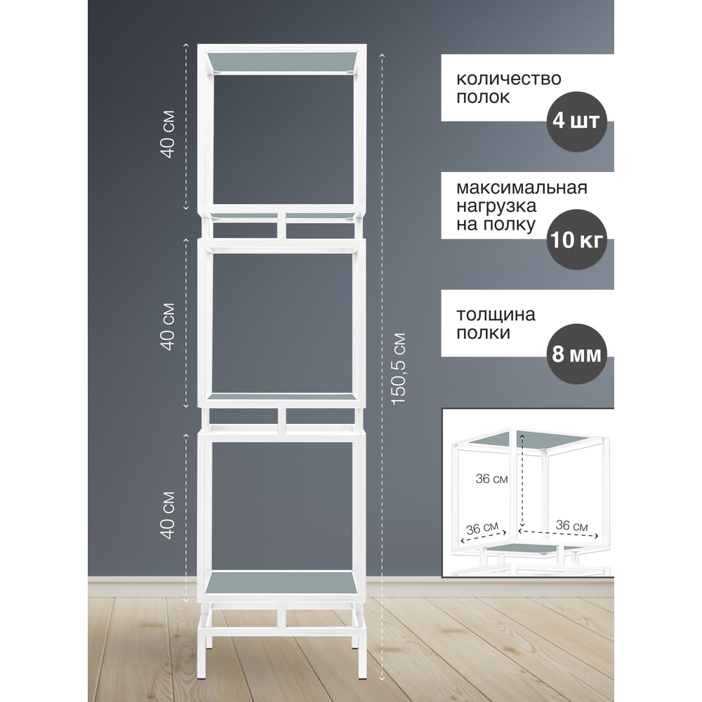 | Кол-во полок/ярусов | 4 шт |