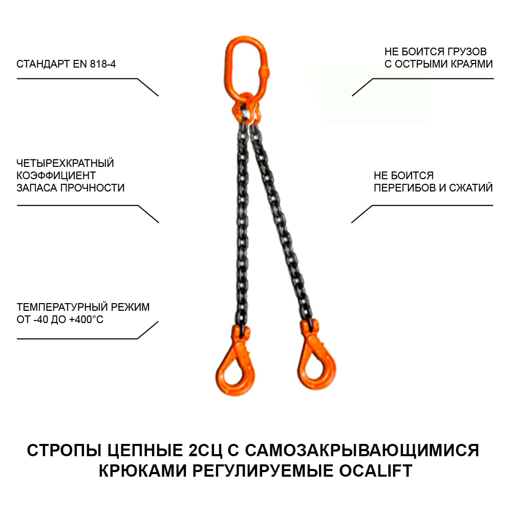 Цепной строп LITELIFT 2СЦ 11,2т 3м с самозакрывающимися крюками двухветвевой цепь 16x48 T8 G80 2sc11200t3s