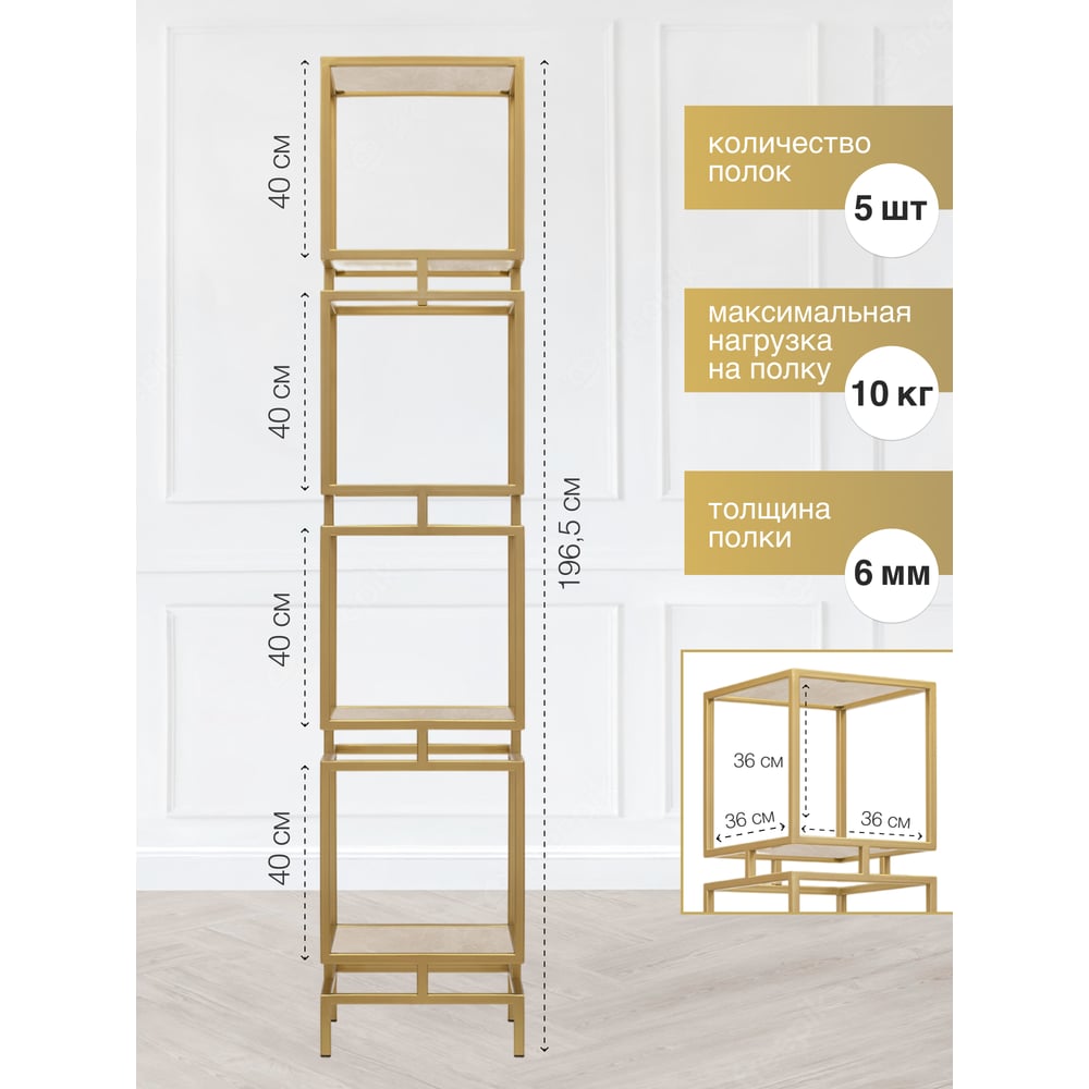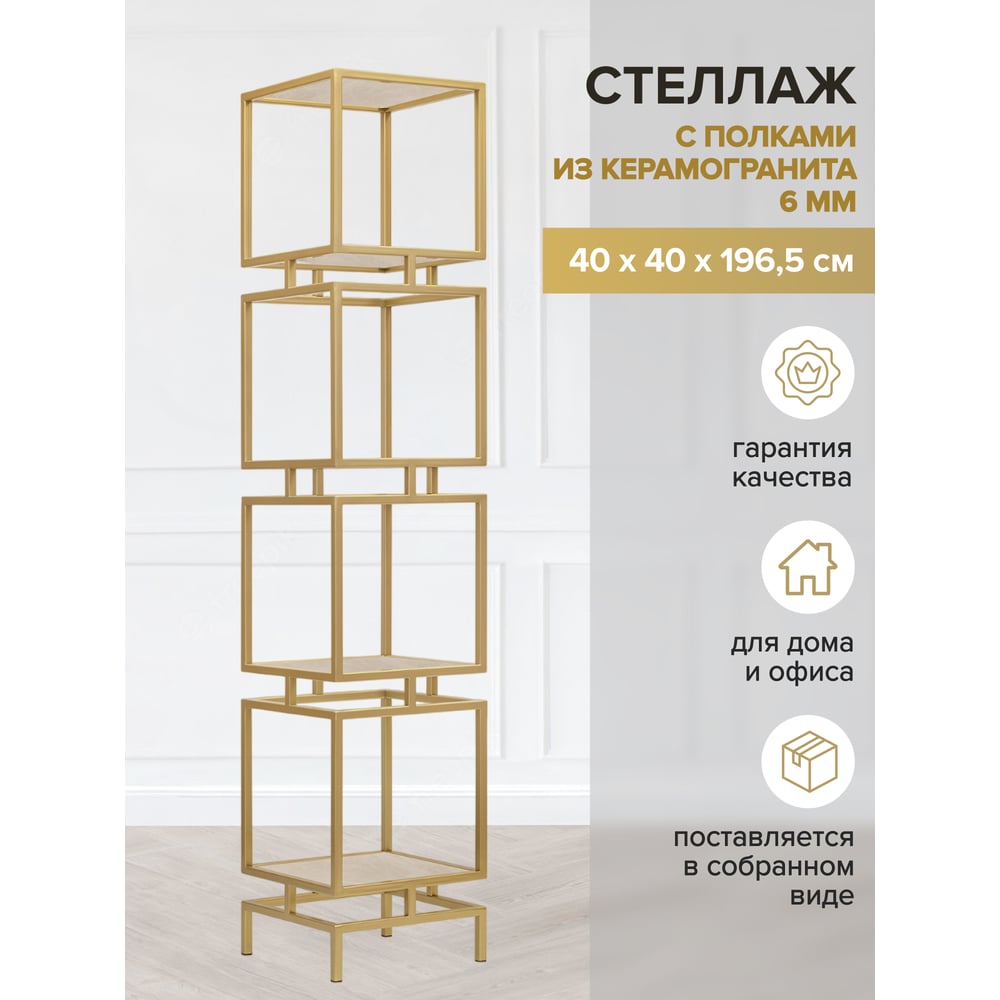 Стеллаж GreenWeen CUBIC-4, золотой каркас, полки керамика Ivory, 1965x400x400 GW-CUBIC-4-G-KI