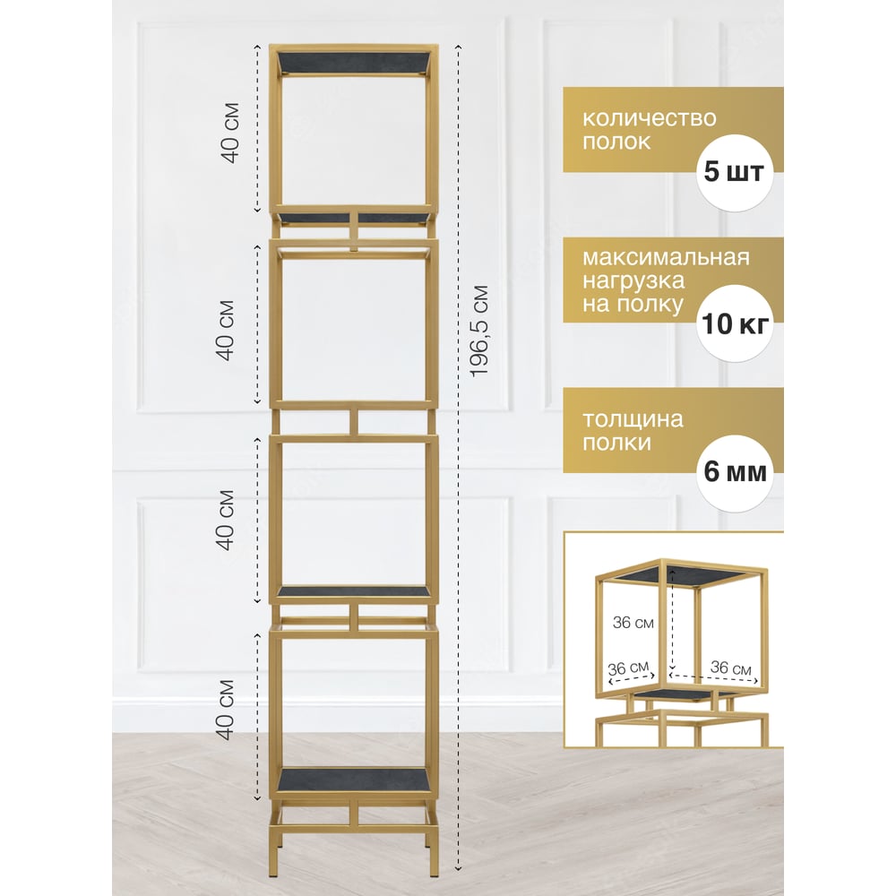 Стеллаж GreenWeen CUBIC-4, золотой каркас, полки керамика Antracite, 1965x400x400 GW-CUBIC-4-G-KA