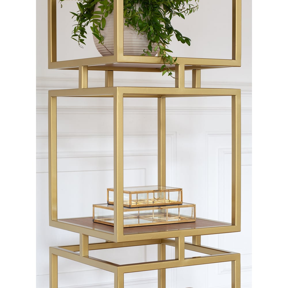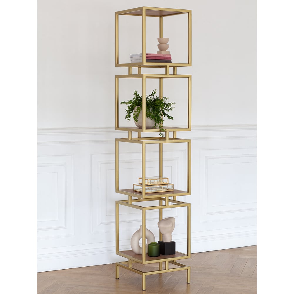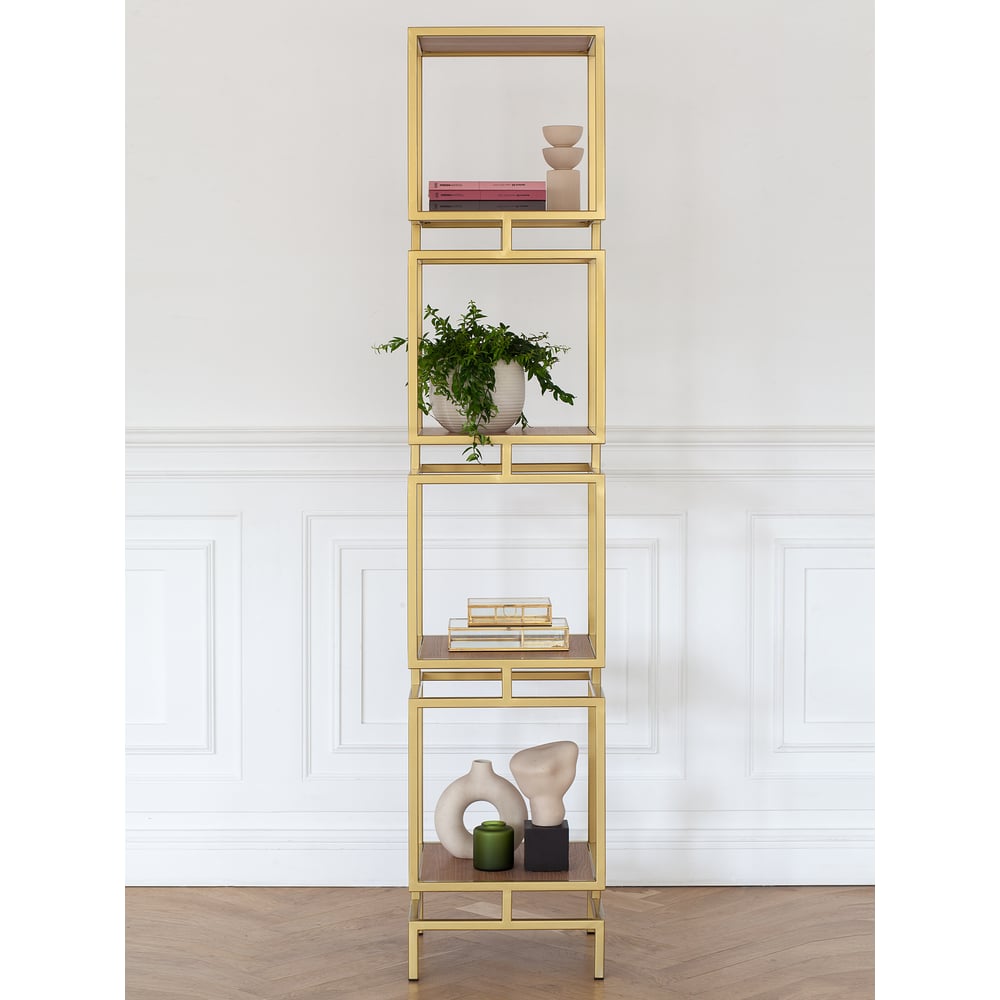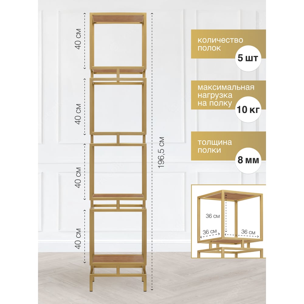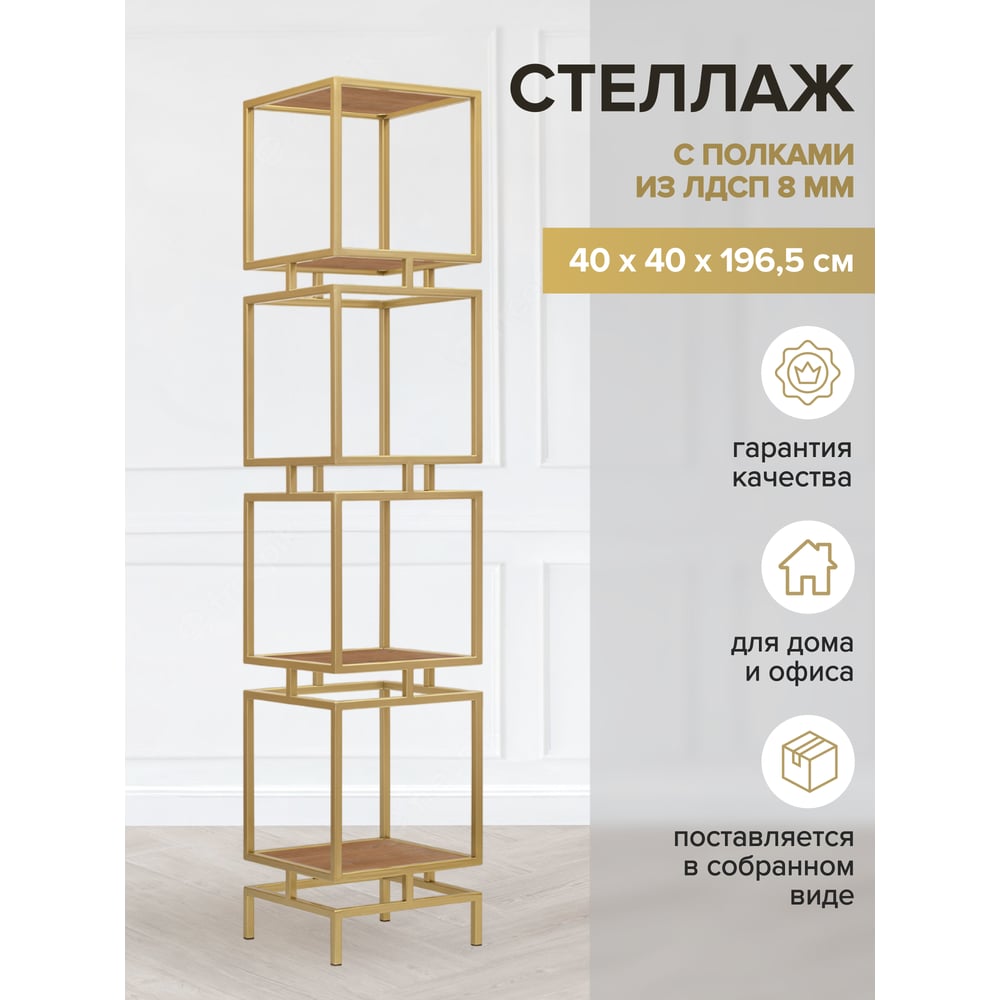 Стеллаж GreenWeen CUBIC-4, золотой каркас, полки ЛДСП Робиния, 1965x400x400 GW-CUBIC-4-G-LD-R