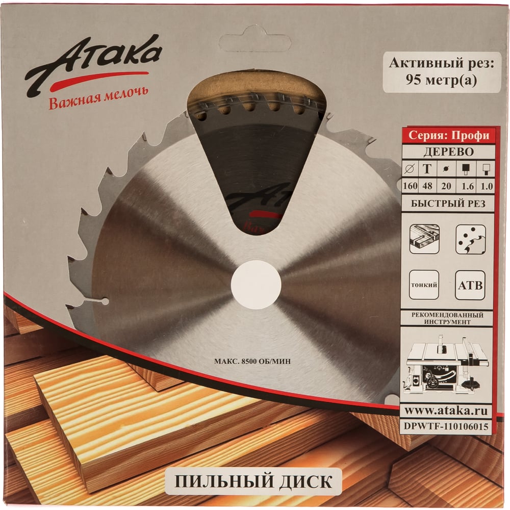 Диск пильный по дереву (160х20 мм; 48T) профи Атака 8078520