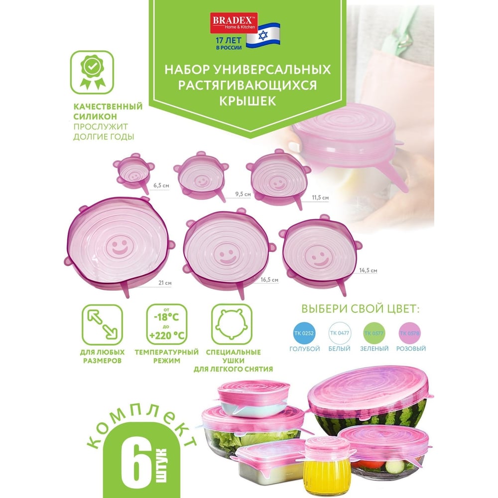 Набор универсальных растягивающихся крышек BRADEX TK 0578