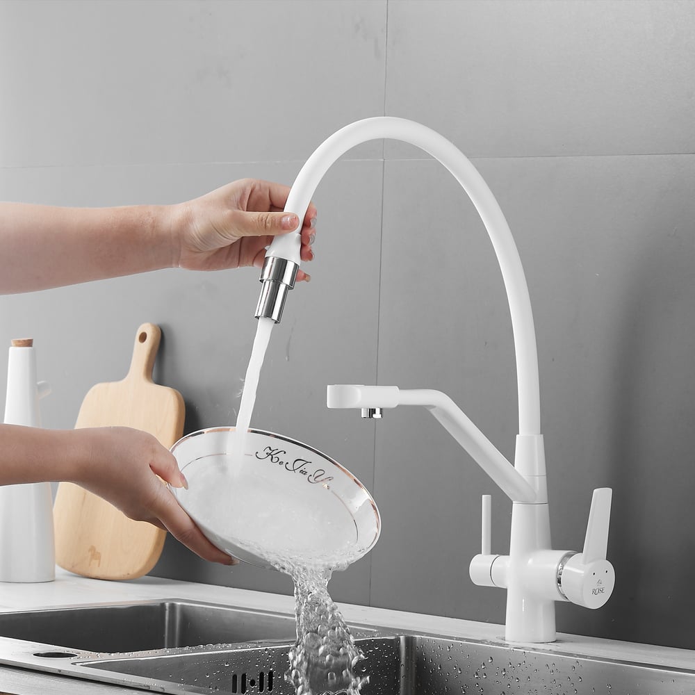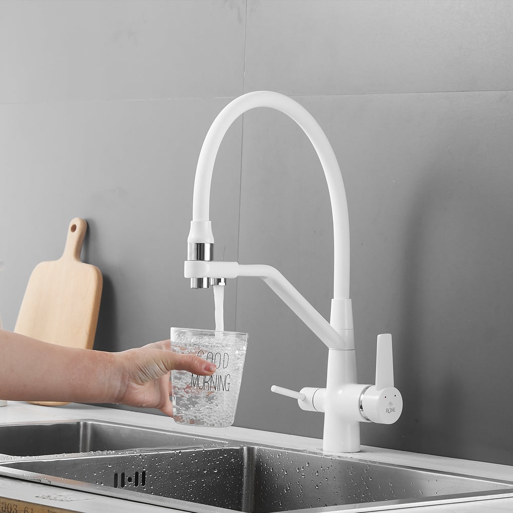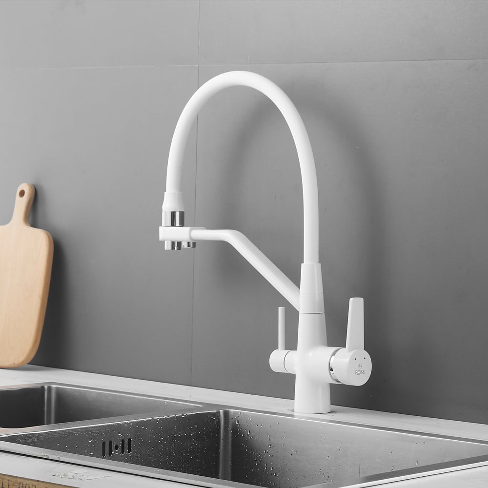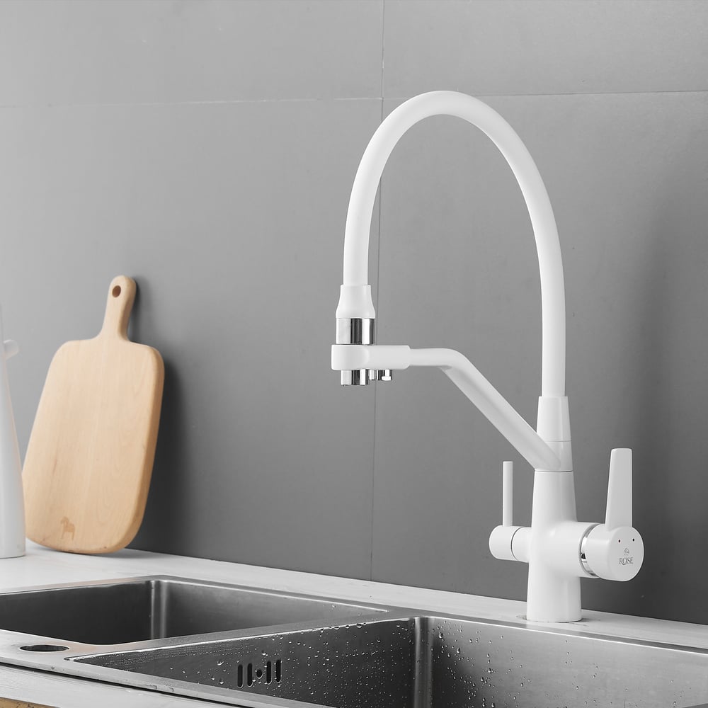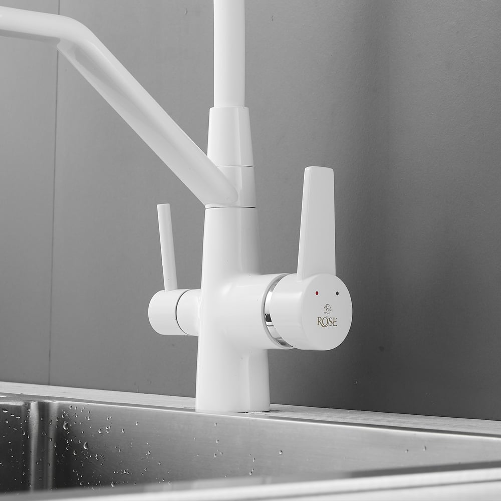 Смеситель для кухни ROSE с подключением к фильтру питьевой воды, белый R558C