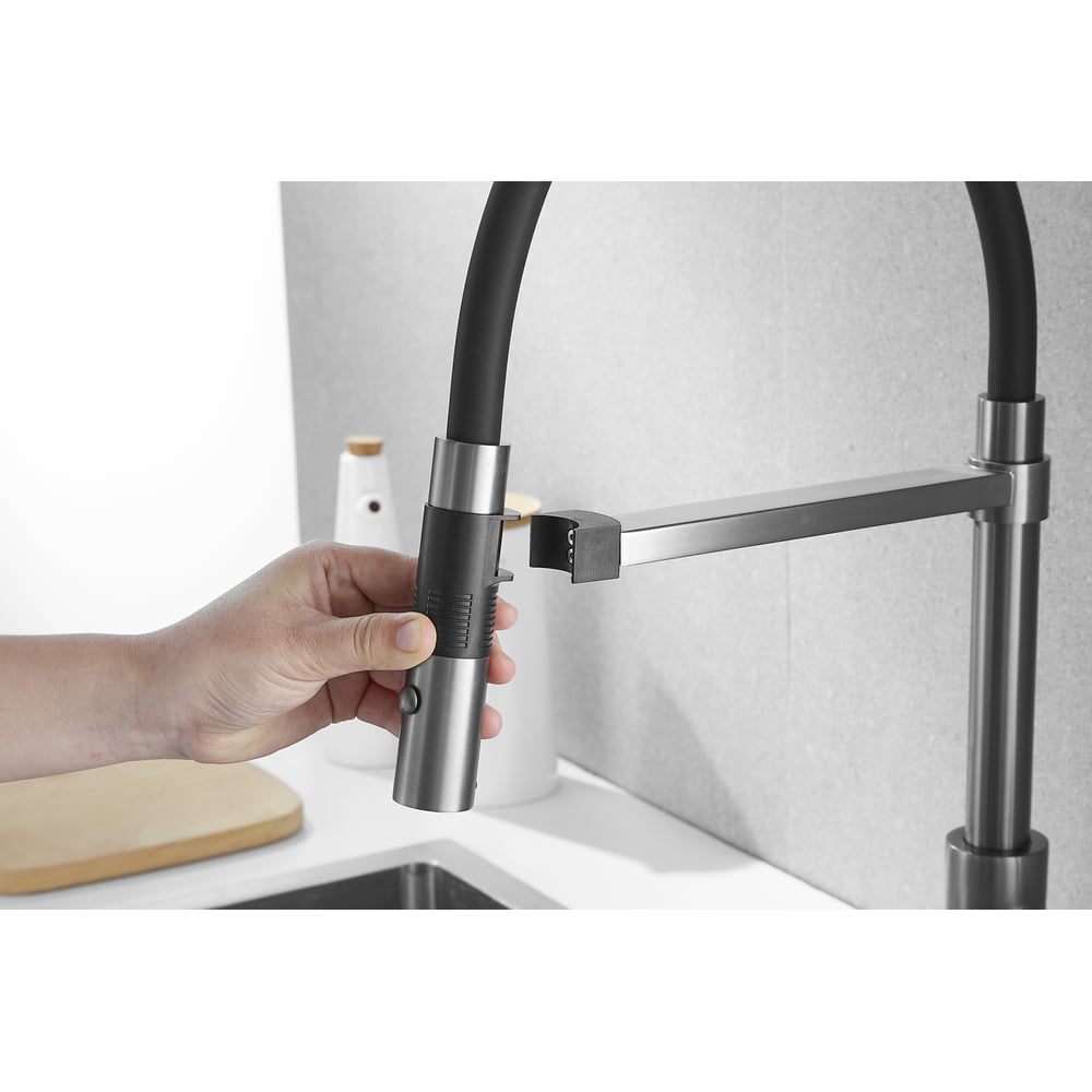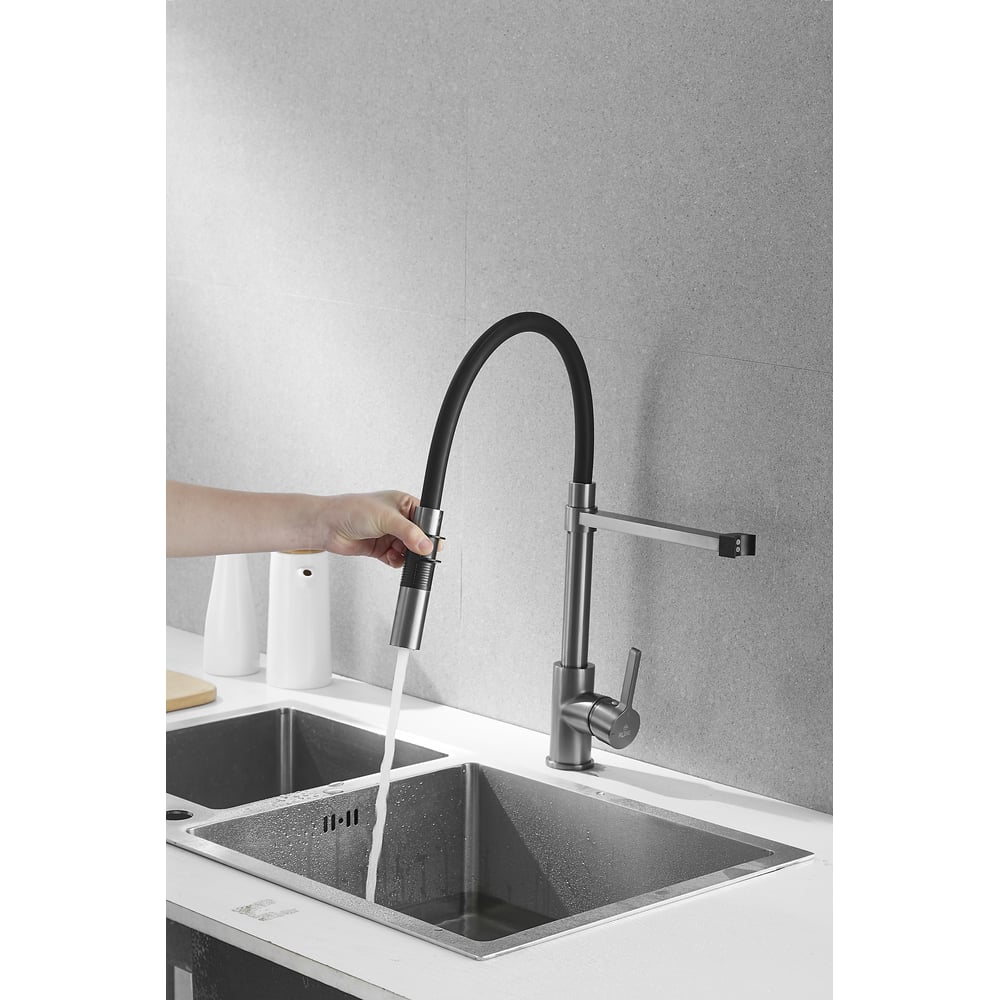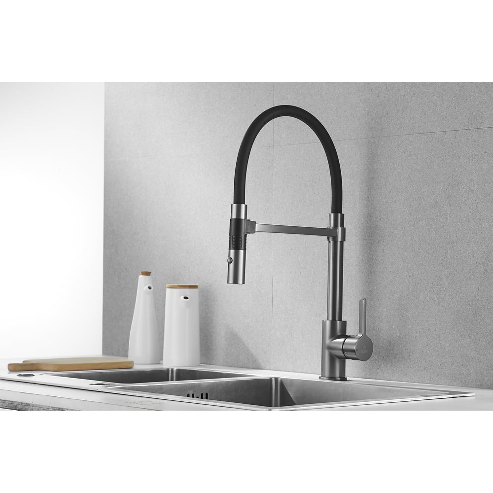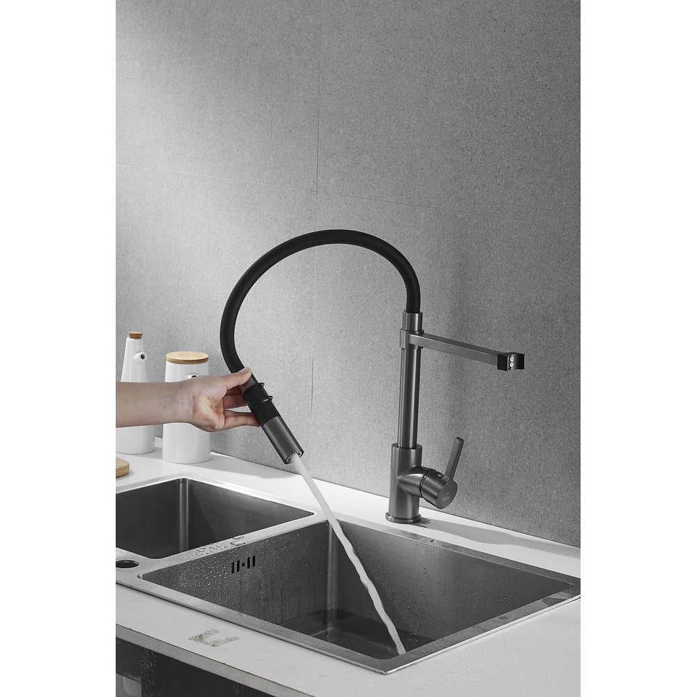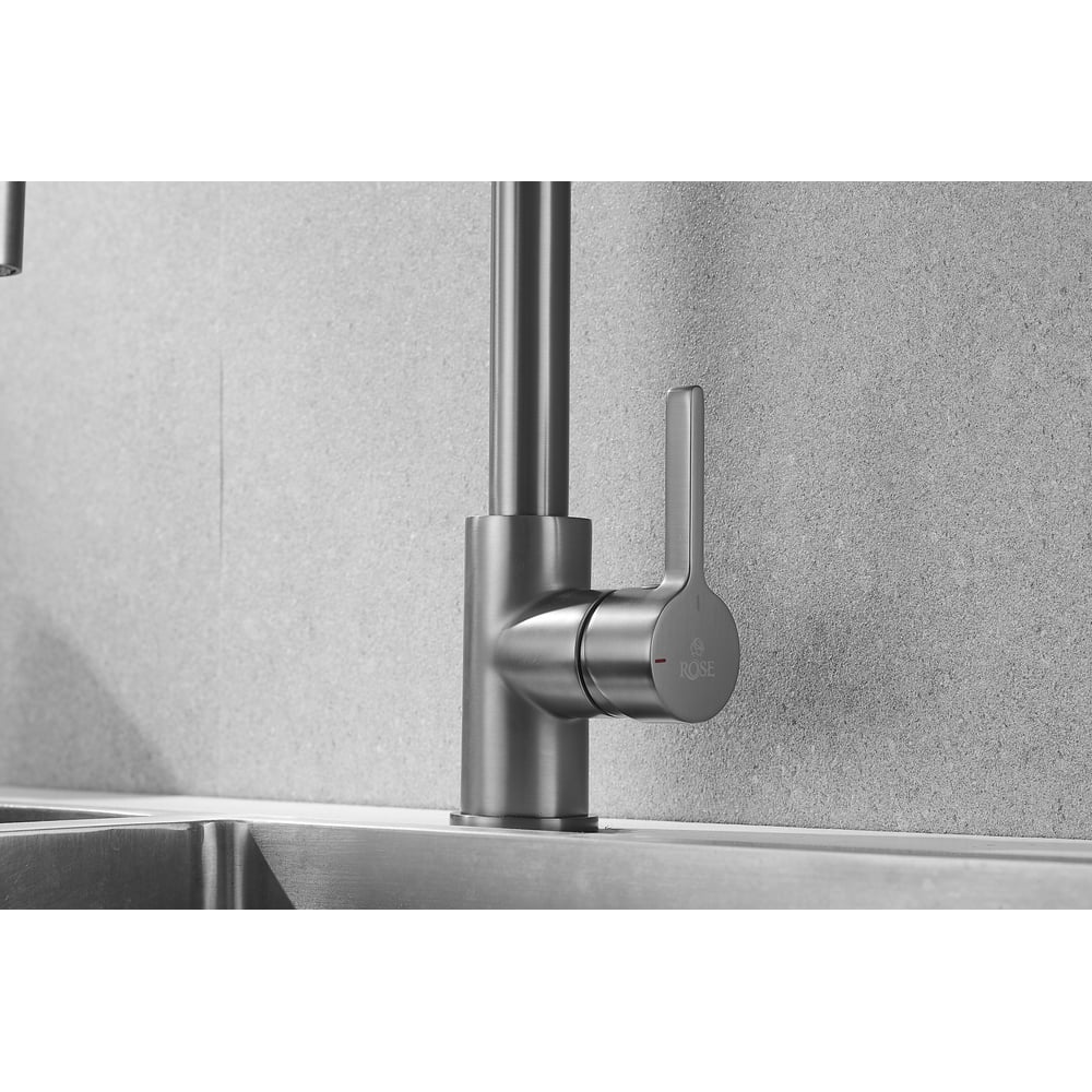 Смеситель для кухни ROSE с гибким изливом и магнитным держателем, оружейная сталь R133T
