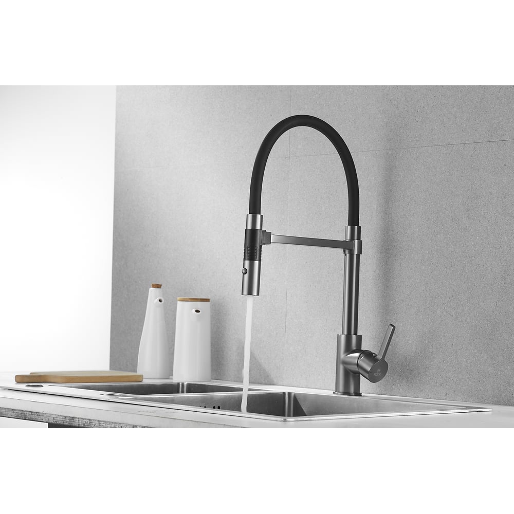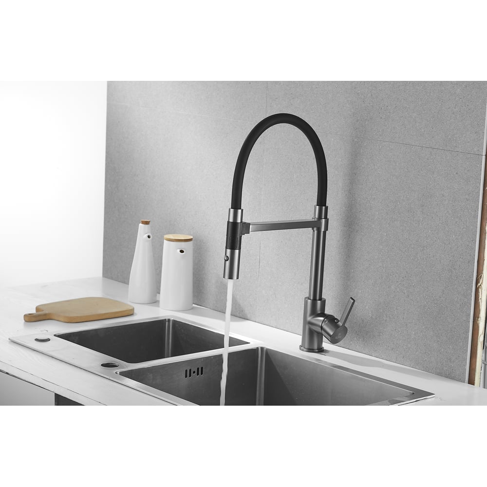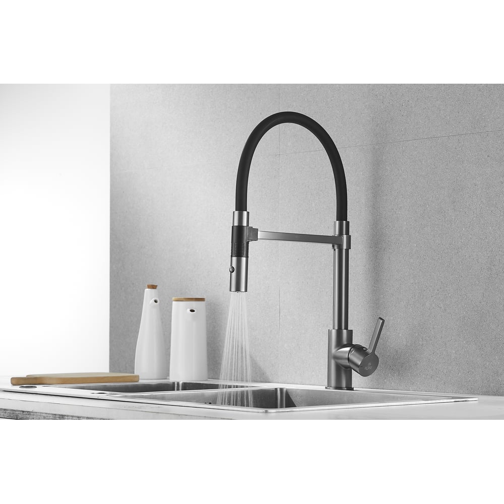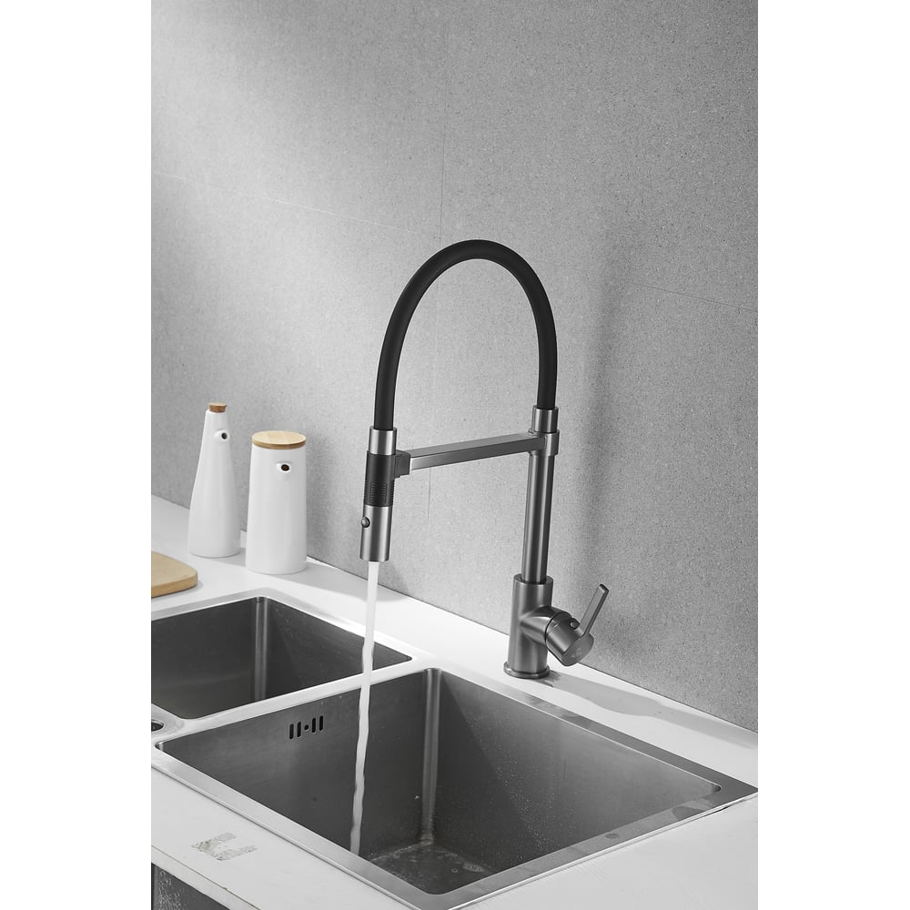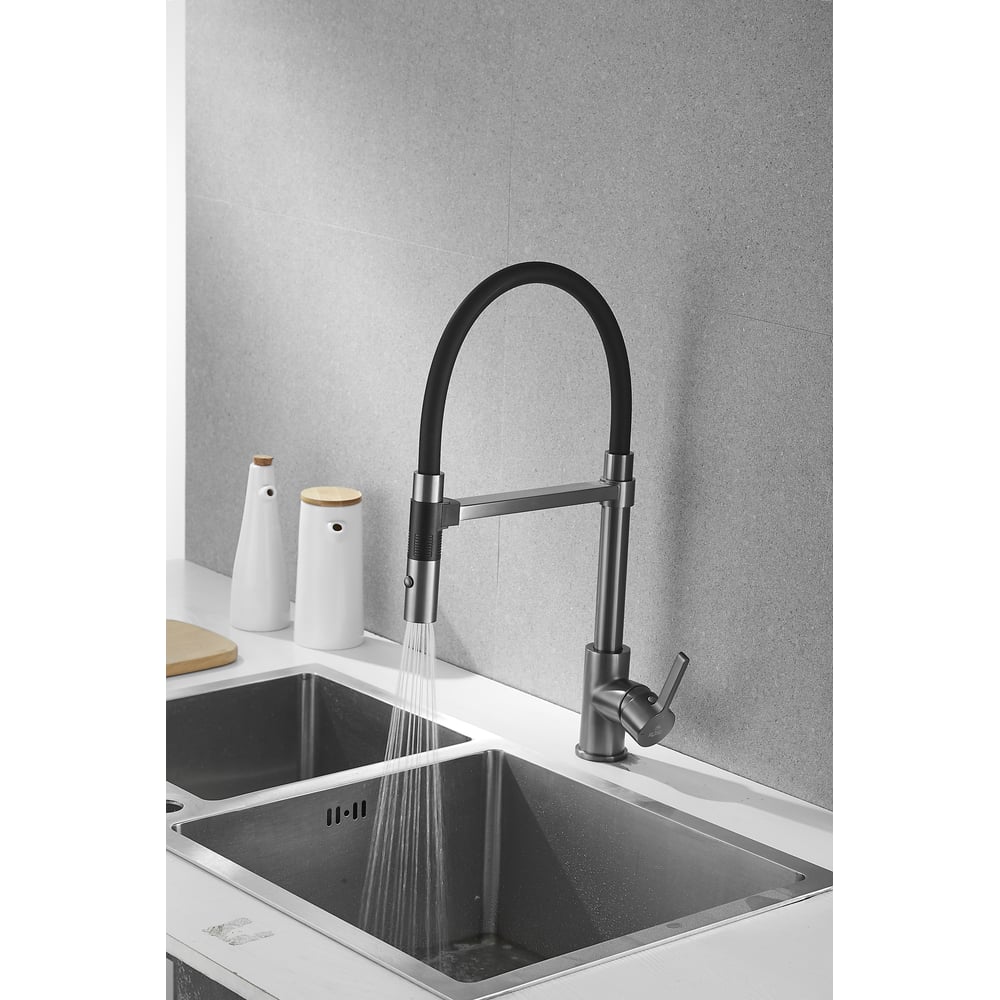 Смеситель для кухни ROSE с гибким изливом и магнитным держателем, оружейная сталь R133T