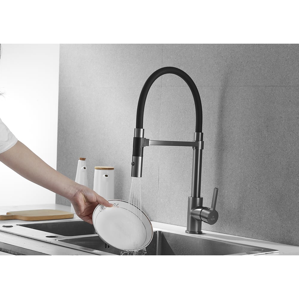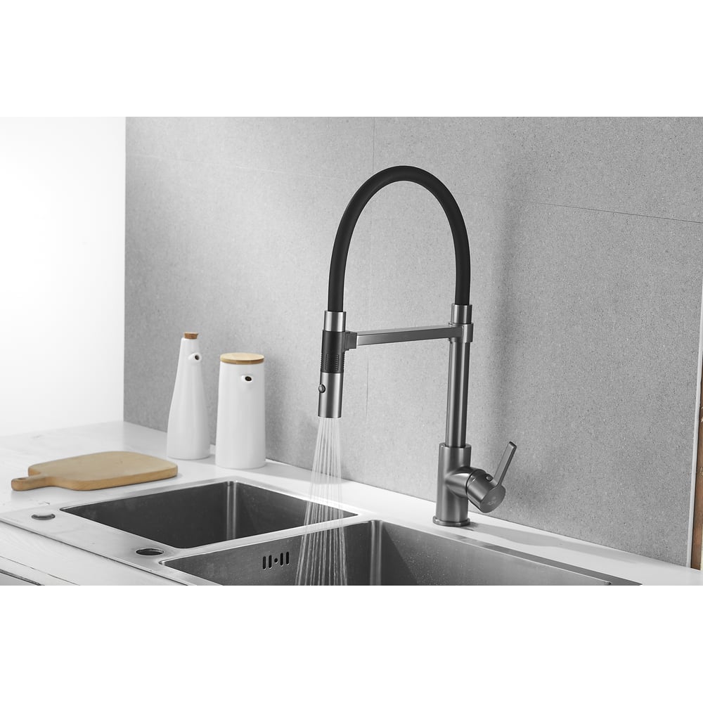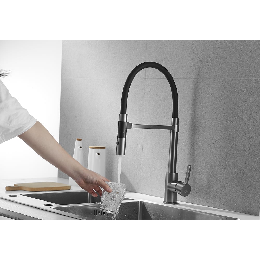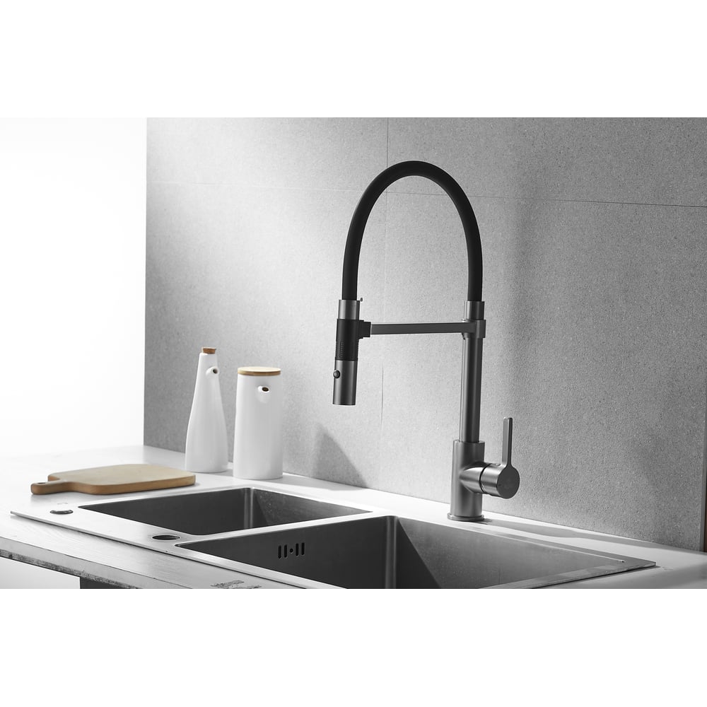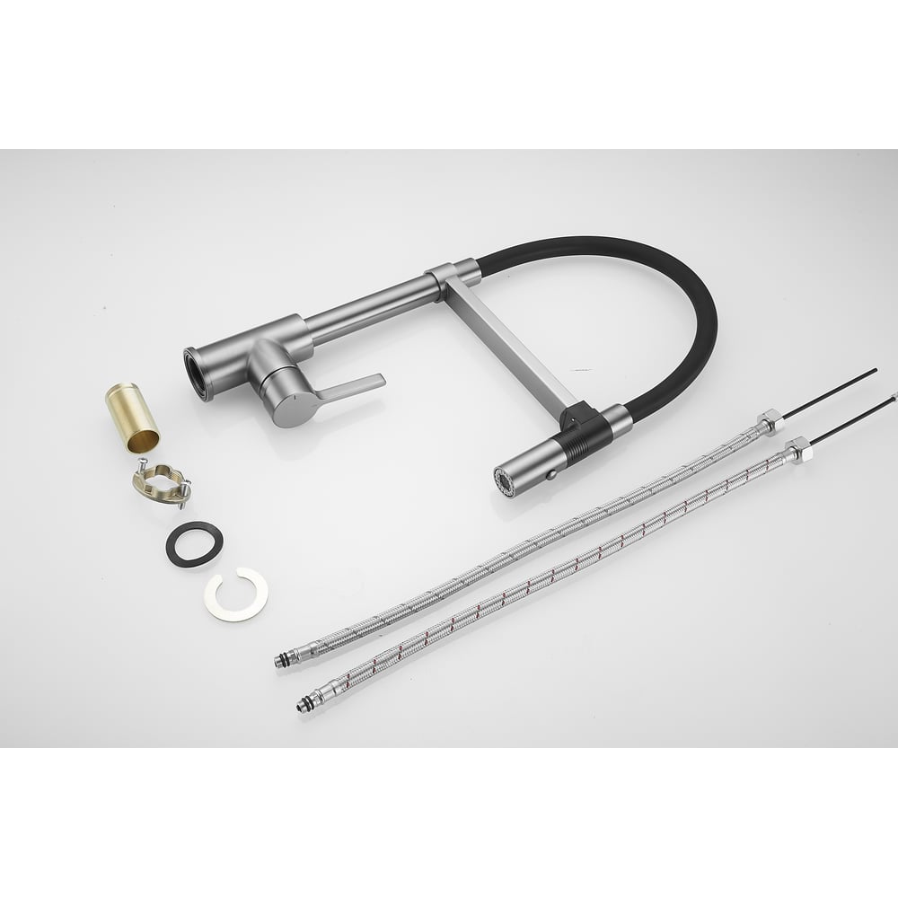 Смеситель для кухни ROSE с гибким изливом и магнитным держателем, оружейная сталь R133T