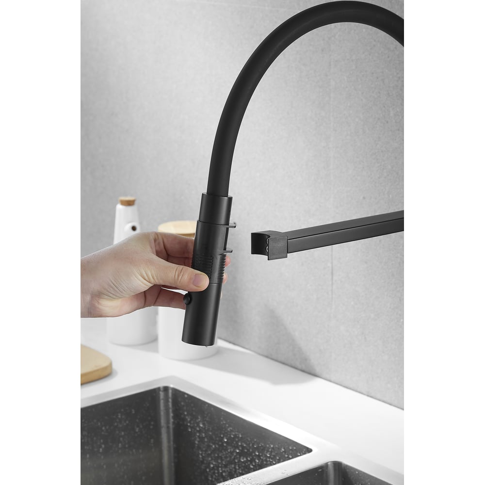 Смеситель для кухни ROSE с гибким изливом и магнитным держателем, черный R133H