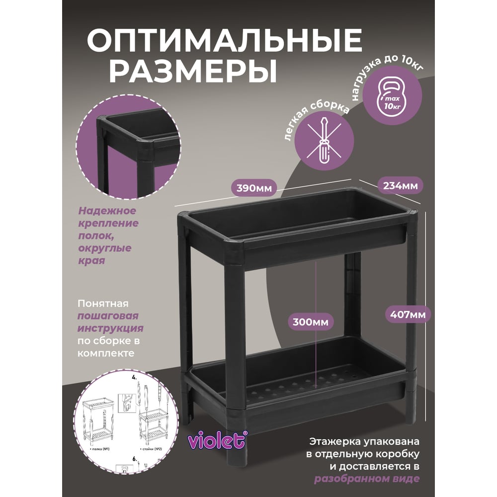 Этажерка Violet VIKEA широкая, 2-х ярусная, черная 781207