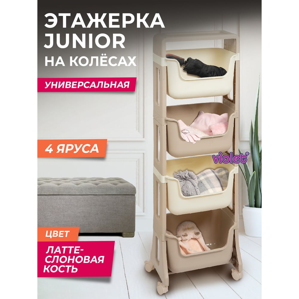 Этажерка Violet Junior напольная, 4-х ярусная, на колесах, латте/слоновая кость 771420