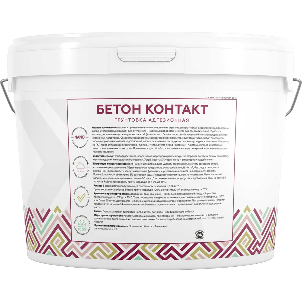 | Тип основы | стирол-акрилатная дисперсия |