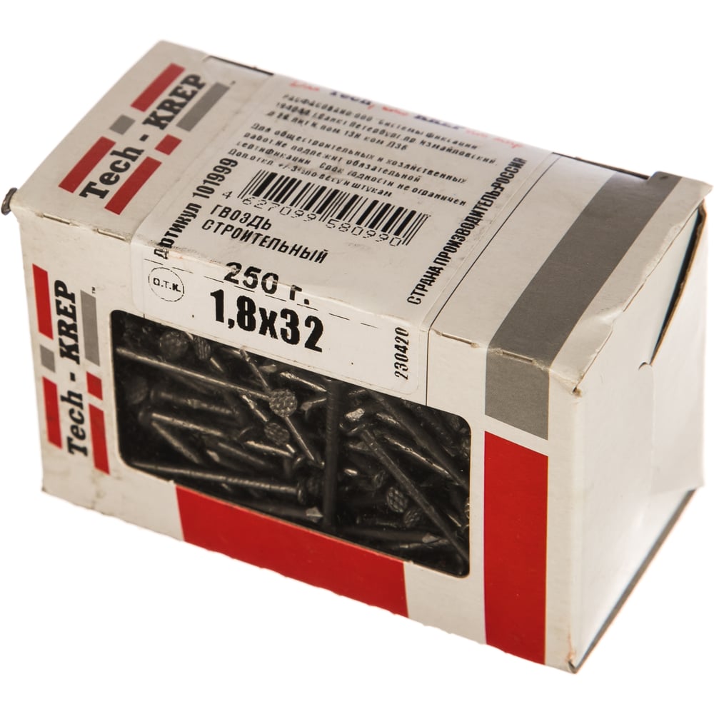 Строительный гвоздь 1.8х32, 250г (примерно 391 шт.) - коробка Tech-Krep 101999