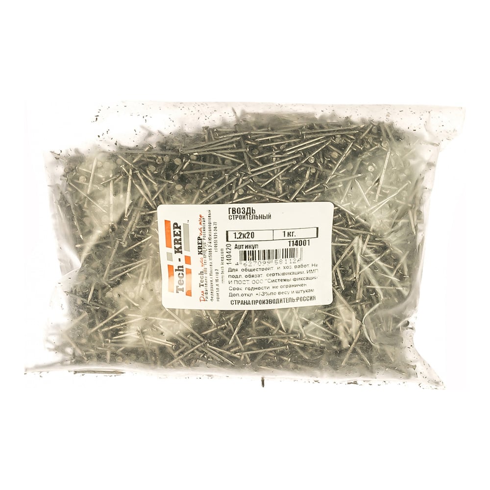 Строительный гвоздь 1.2х20, 1кг (5464 шт.) - пакет Tech-Krep 114001