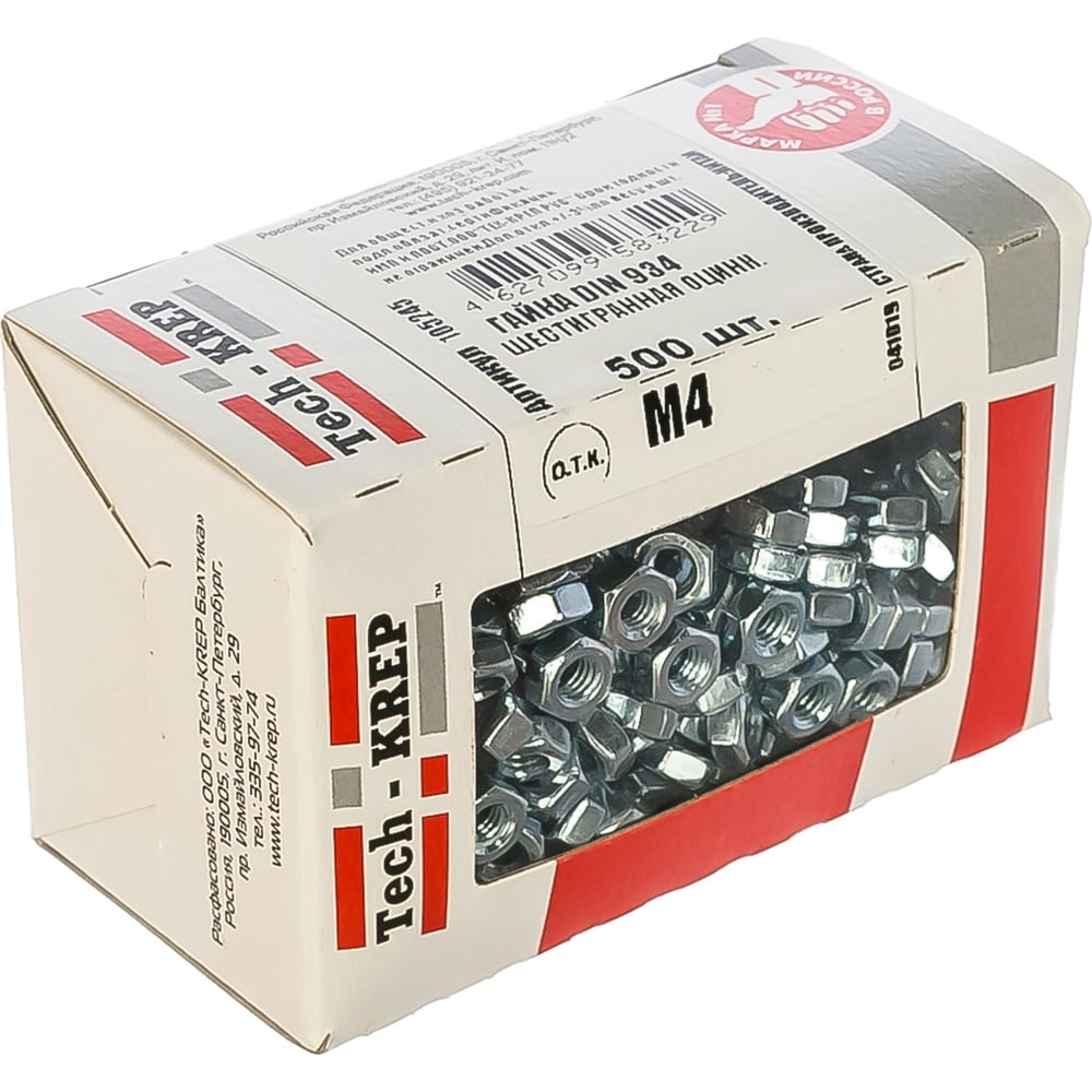 Шестигранная гайка DIN 934 оцинкованная М4, 500шт - коробка Tech-Krep 105245