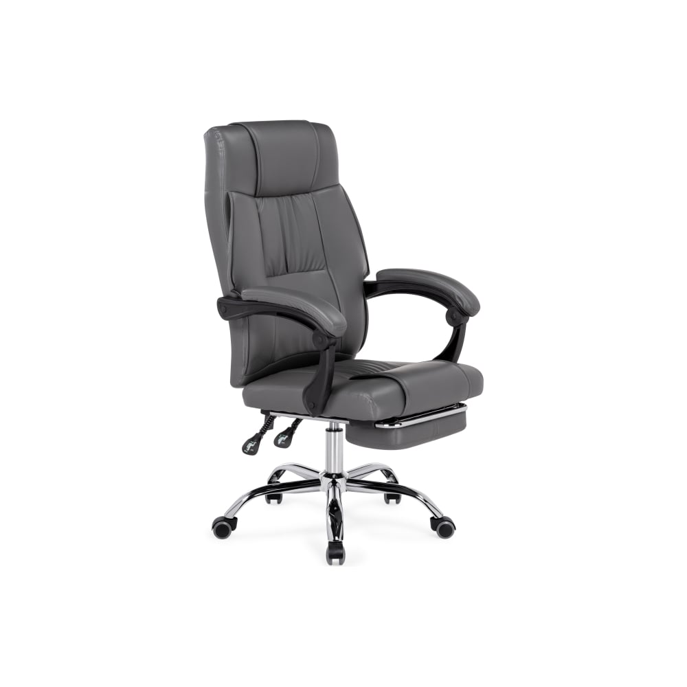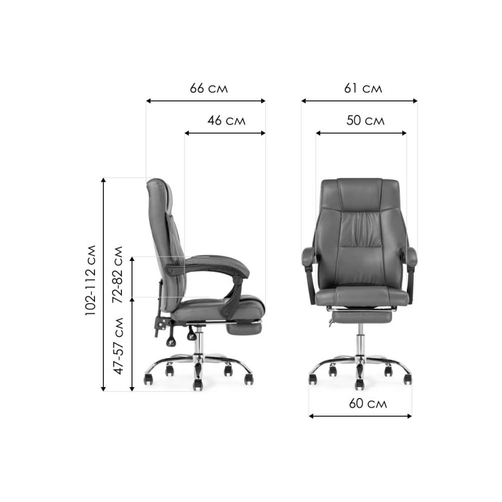 Габариты без упаковки 1120x660x610 мм Вес нетто 15.75 кг Стиль классический Регулировка высоты сиденья да Требует сборки да Подлокотники да Подъемный механизм да Механизм качания да Регулировка высоты спинки нет Регулировка высоты подлокотников нет Механизм вращения да Подголовник нет Регулировка наклона спинки нет Подставка для ног да Max нагрузка 100 кг Ширина сиденья 500 мм Глубина сиденья 460 мм Ширина спинки 500 мм Высота спинки 740 мм Min высота сиденья 470 мм Мах высота сиденья 570 мм Поясничный упор нет Цвет спинки серый Материал крестовины хромированная сталь Материал подлокотников пластик, экокожа Цвет сиденья серый Материал обивки экокожа Колеса есть