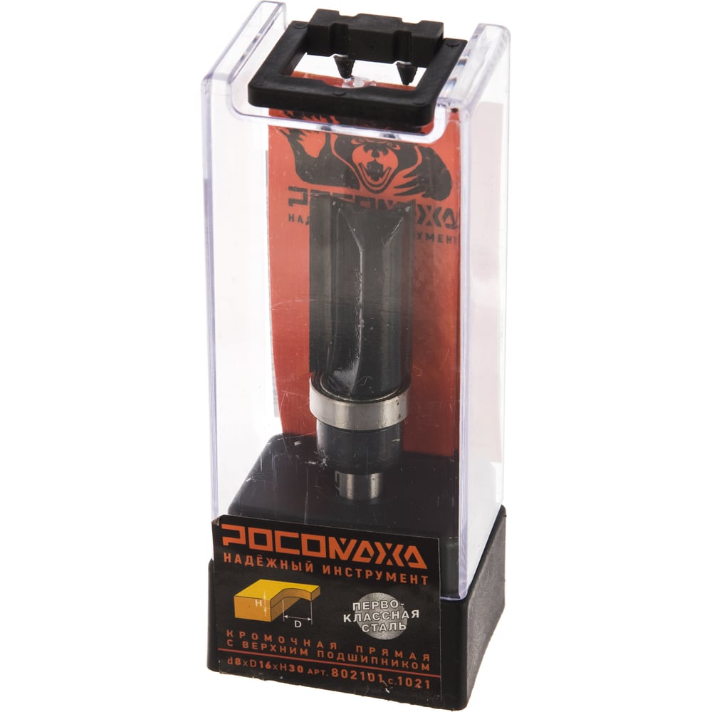 Фреза кромочная прямая с верхним подшипником серия 1021 (16x30 мм; хвостовик 8 мм) Росомаха 802101