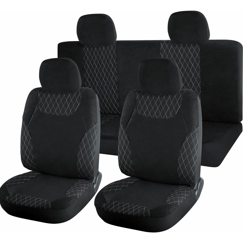 Чехлы Nova Bright на сиденья Fusion SELECTION черные, декоративная строчка белой нитью 11 предметов 47403