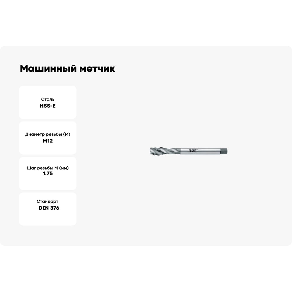 Машинный метчик PROMAT М12x1.75, с винтовыми канавками, HSSCo5, DIN371 4000867382