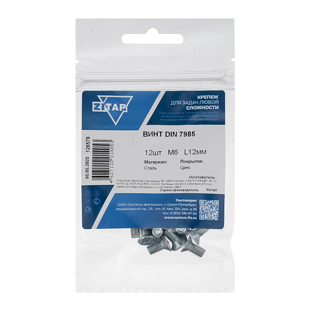 Винт Zitar DIN7985 с полукруглой головкой оцинкованный М6x12, 12 шт. (пакет) 126579