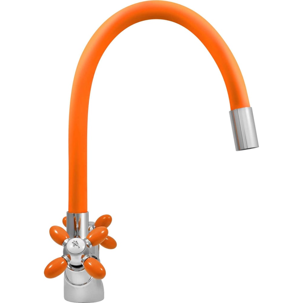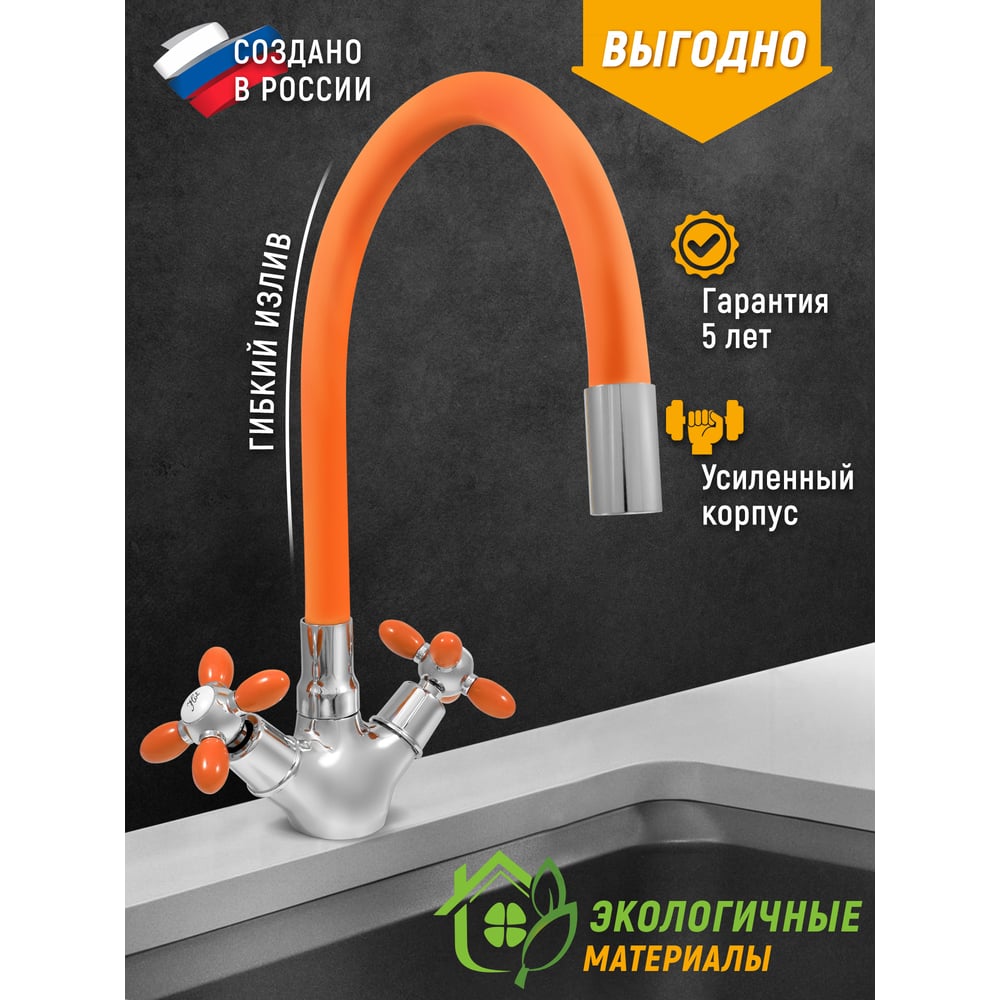 Смеситель для мойки Juguni двуручный с гибким силиконовым изливом (оранжевый), креп. гайка, 0402.141