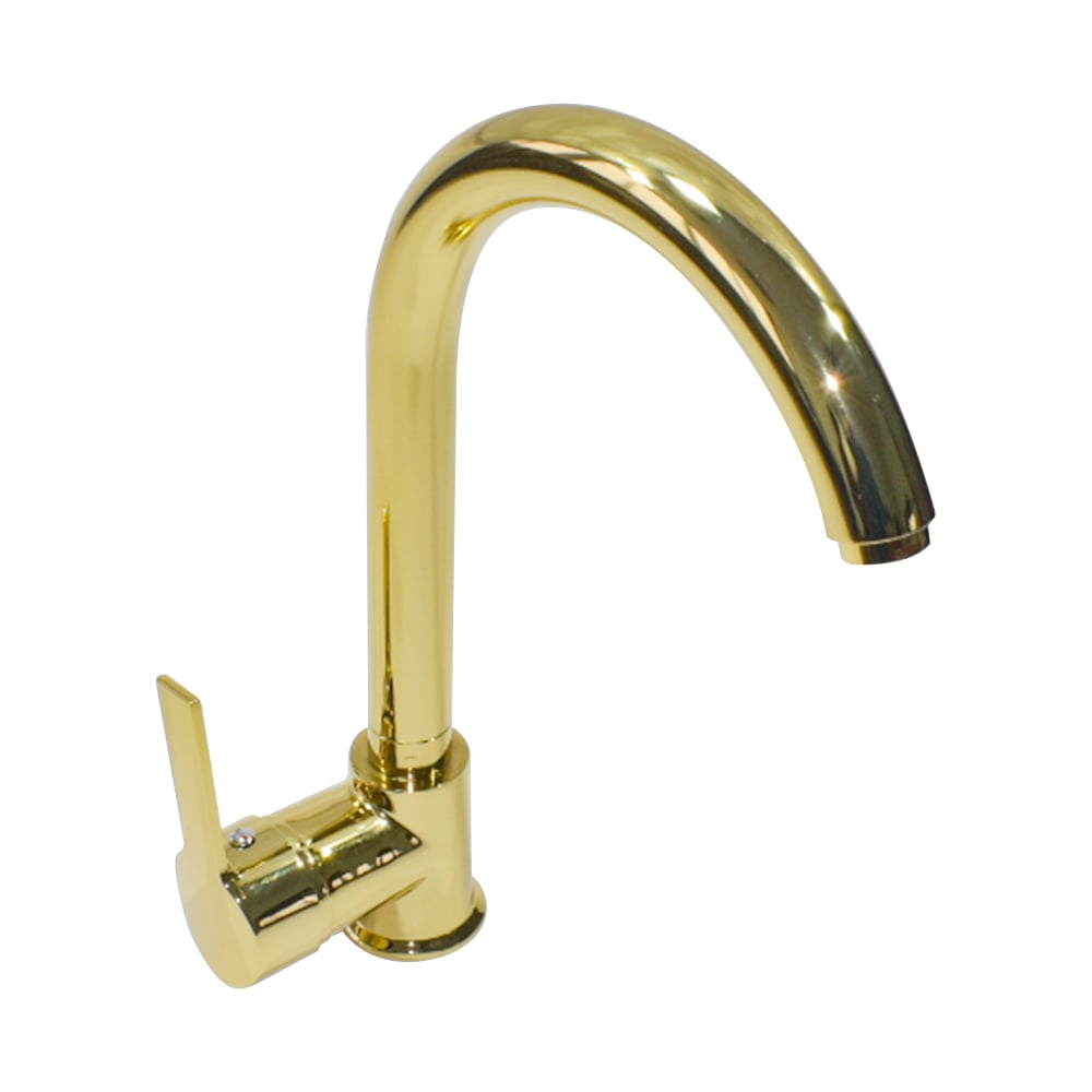 Смеситель кухонный однорычачный Guven с поворотным изливом, золотой 9603G
