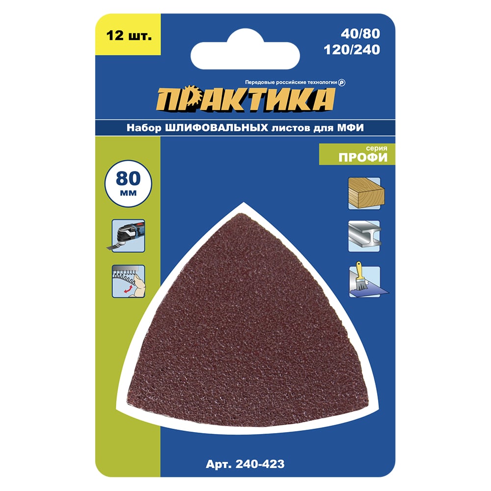 Набор шлифовальных листов дельтавидных (80 мм) 12 шт. ПРАКТИКА 240-423