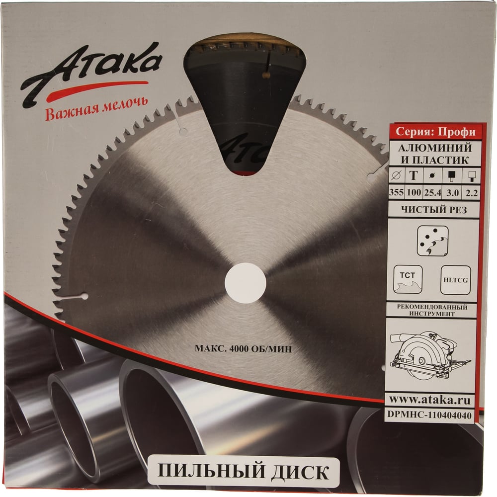 Диск пильный (355 мм; 100T; 25.4 мм) для алюминия и пластика профи АТАКА 8077960