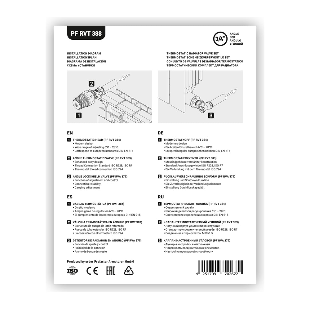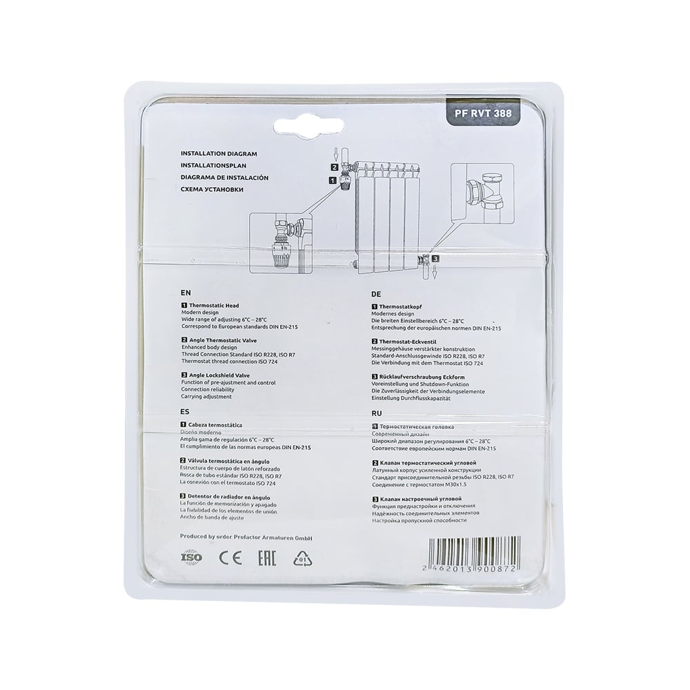 Комплект радиатора PROFACTOR термостатический, угловой, 3/4 PF RVT 388