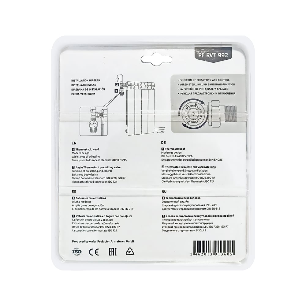 Комплект радиатора PROFACTOR термостатический, угловой, с преднастройкой, 3/4 PF RVT 992
