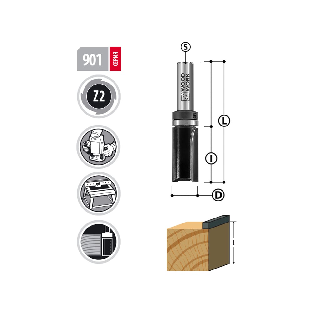 Фреза прямая с подшипником 19х26 мм, S=8 мм WOODWORK 901.1926.08