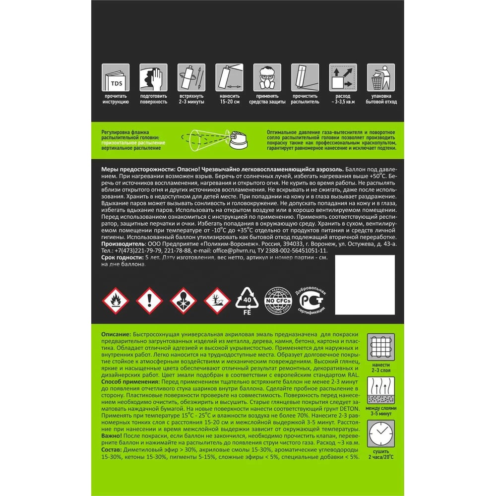 | Способ нанесения | аэрозольное распыление |