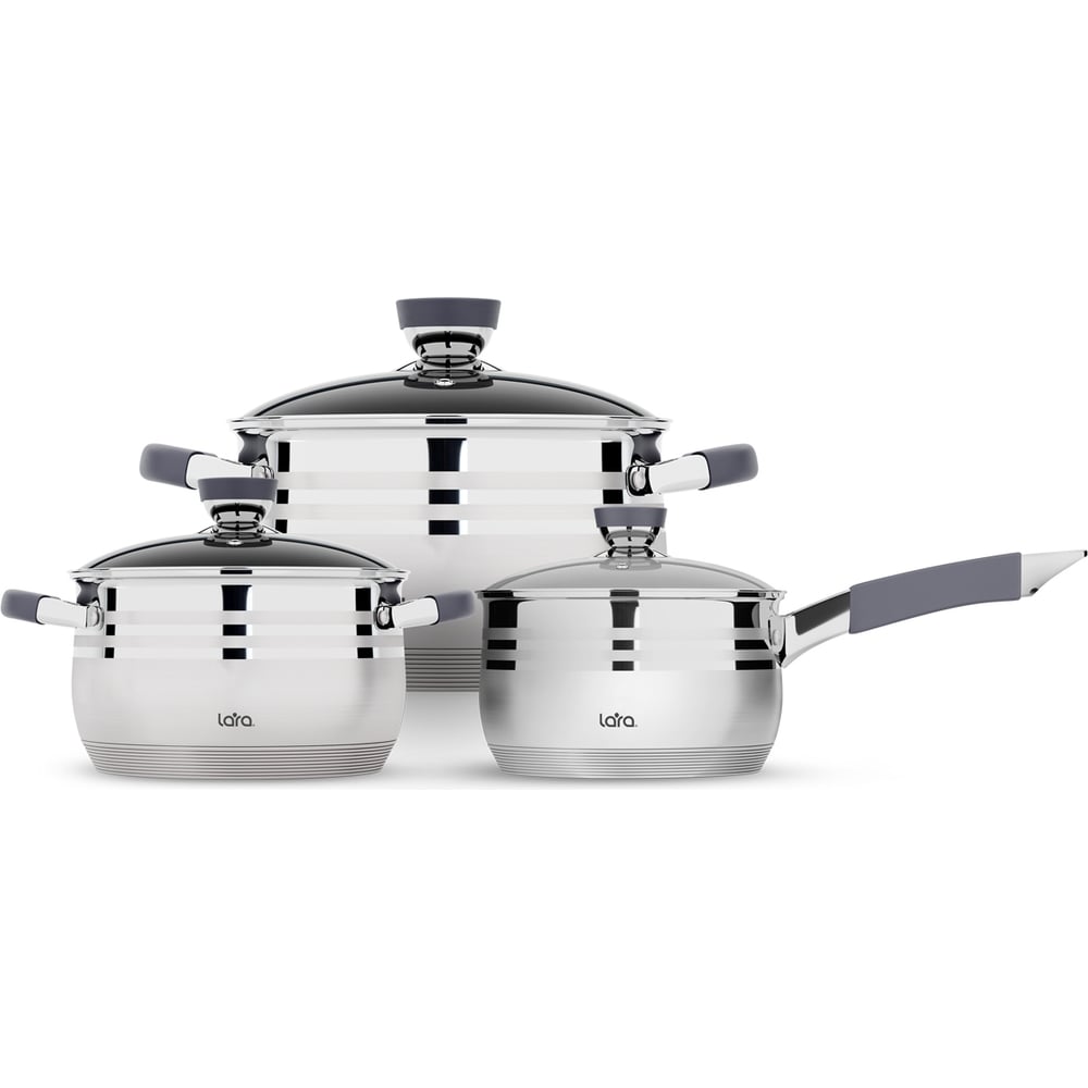 Набор посуды Lara MERCURY 6 предметов, кастрюли 2.9 л + 4.9 л + сотейник 2.1 л - LR03-47 LR02-122