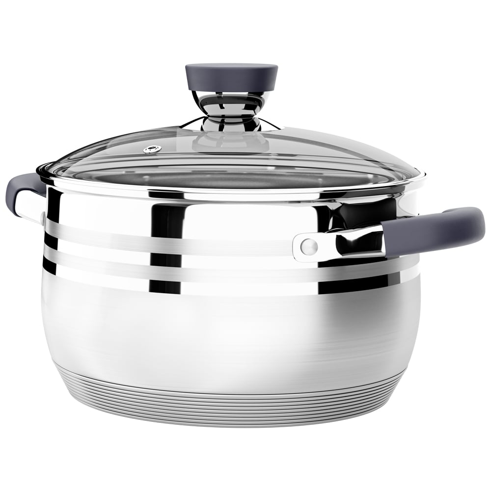 Кастрюля Lara MERCURY нержавеющая сталь 22 см, 4.9 л, стальные ручки, капсулированное индукционное дно, жаропрочная крышка LR02-473