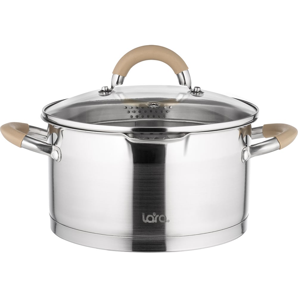 Набор посуды Lara БЕРЛИН 6 предметов 1.7 л, 3.1 л, 5.5 л капсулированное индукционное дно, крышка дуршлаг LR02-119