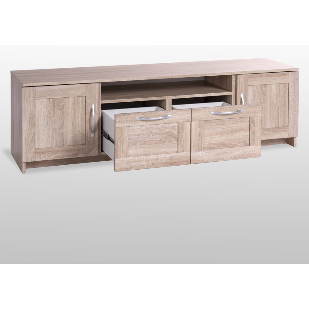 Тумба для ТВ Гуд ЛАКК СИРИУС 2 двери и 2 ящика, 156x41x47 см, бежевая, дуб сонома 2.02.03.330.3