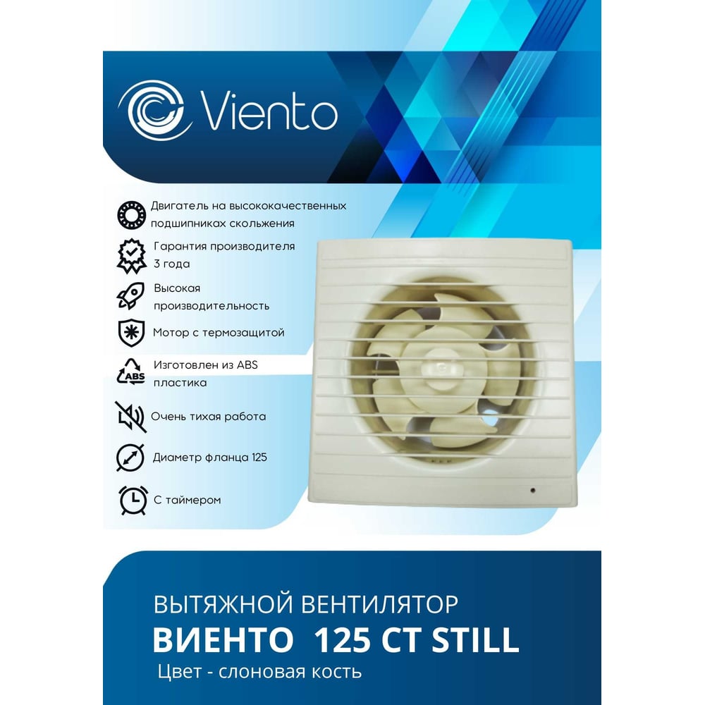 Осевой вентилятор вытяжной ВИЕНТО 125СТ STILL (240 м3), сл. кость 125СТ STILL ivory ВИЕНТО 125СТ STILL ivory